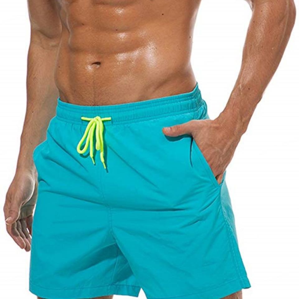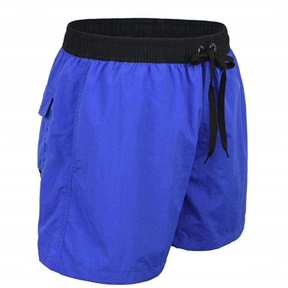 ชุดว่ายน้ำผู้ชายแบบสองชิ้น สีพื้น ผลิตโดยผู้ผลิตมืออาชีพจากจีน ผ้าตาข่ายซับใน แห้งเร็ว ออกแบบตามสั่งสำหรับออกกำลังกาย