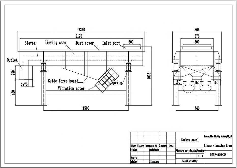 เครื่องกรองแบบสั่นสะเทือนเชิงเส้นของจีน พร้อมมอเตอร์สั่นสะเทือนสองตัว ทำจากสแตนเลส 304 ความจุ 20 ตัน/ชม. สำหรับงานเคมี