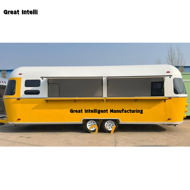 รถขายอาหารเคลื่อนที่อเนกประสงค์ Great Intelli China Standard ผลิตจากสแตนเลส เหมาะสำหรับขายพิซซ่า วาฟเฟิล ทาโก้ ร้านอาหารเคลื่อนที่ รถพ่วงอาหาร Intelli