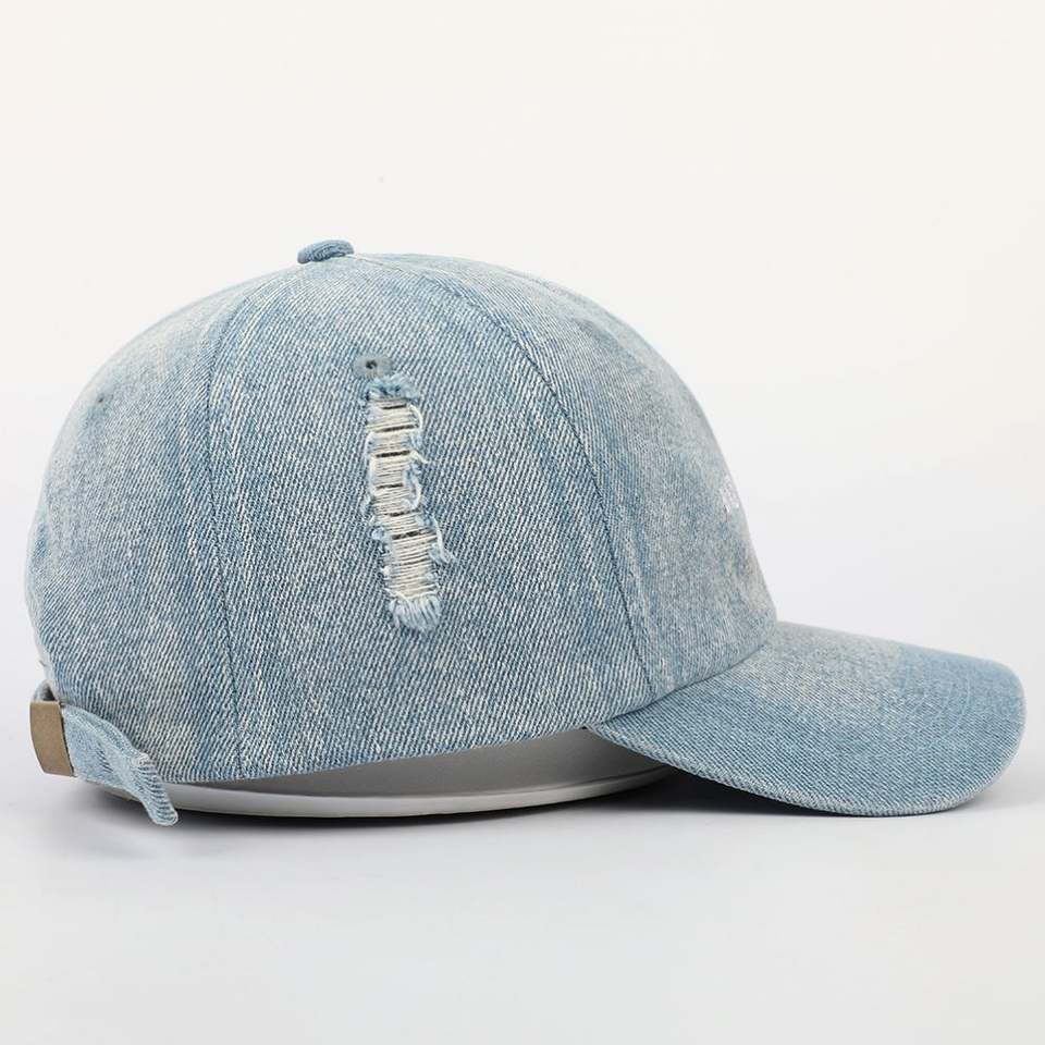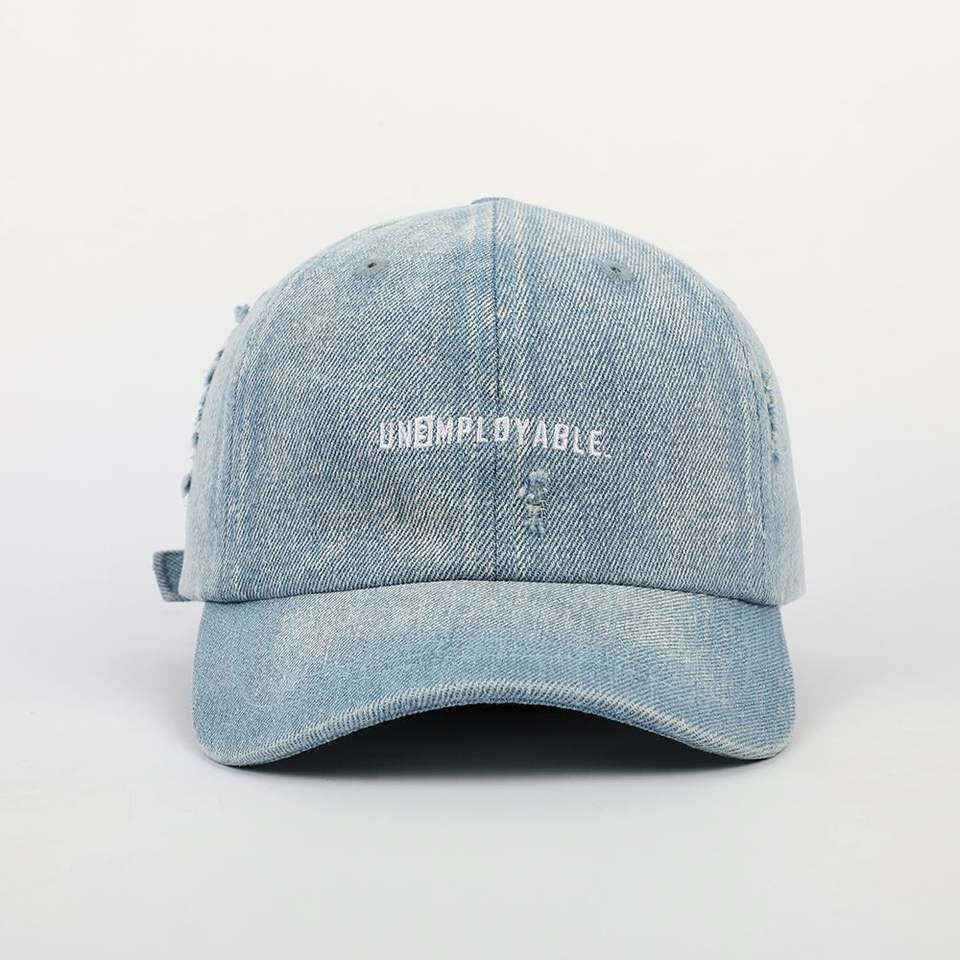 หมวกเบสบอลแบบ6แผงแบบวินเทจหมวกปักลายสำหรับคุณพ่อกางเกงยีนส์แบบไม่มีโครงผู้ผลิตจีน