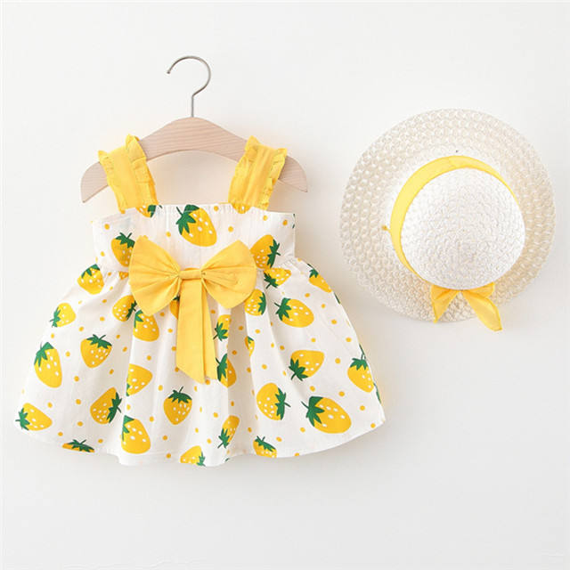 ชุดเดรสเด็กผู้หญิงลายจุดสีชมพูแดงผ้าฝ้ายสำหรับฤดูร้อนจากซัพพลายเออร์จีน พร้อมหมวกกันแดด