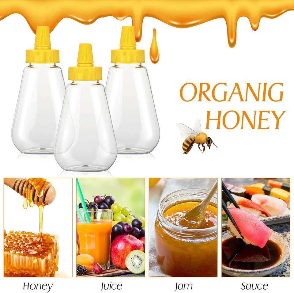 ขวดพลาสติกใสสำหรับบรรจุน้ำผึ้งจากซัพพลายเออร์จีน แบบบีบได้ บรรจุภัณฑ์แบบเรียบ