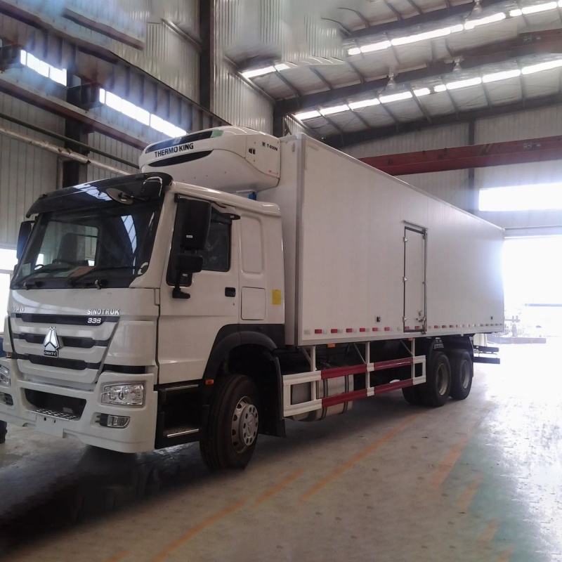 รถบรรทุกห้องเย็น HOWO 6X4 ของจีน สำหรับขนส่งสินค้าแช่แข็งอย่างดี รถบรรทุกมือสอง