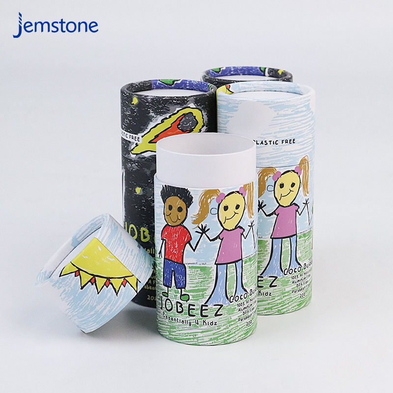 จีนขายส่งวัสดุเป็นมิตรกับสิ่งแวดล้อมหลอดกระดาษบรรจุภัณฑ์พิมพ์สีแบบกําหนดเองพร้อมฝาปิด