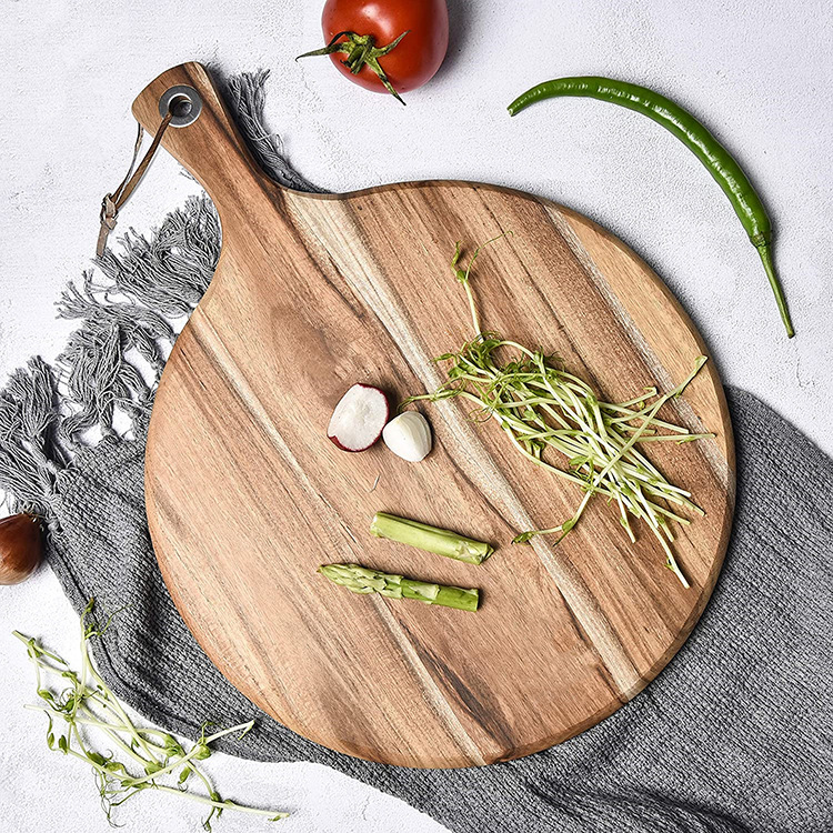 Charmline เขียงไม้อะคาเซียทรงกลมสำหรับเทศกาลอีสเตอร์อัจฉริยะพร้อมด้ามจับทำจากไม้อะคาเซียสินค้าตราร้านขายส่งจากจีน