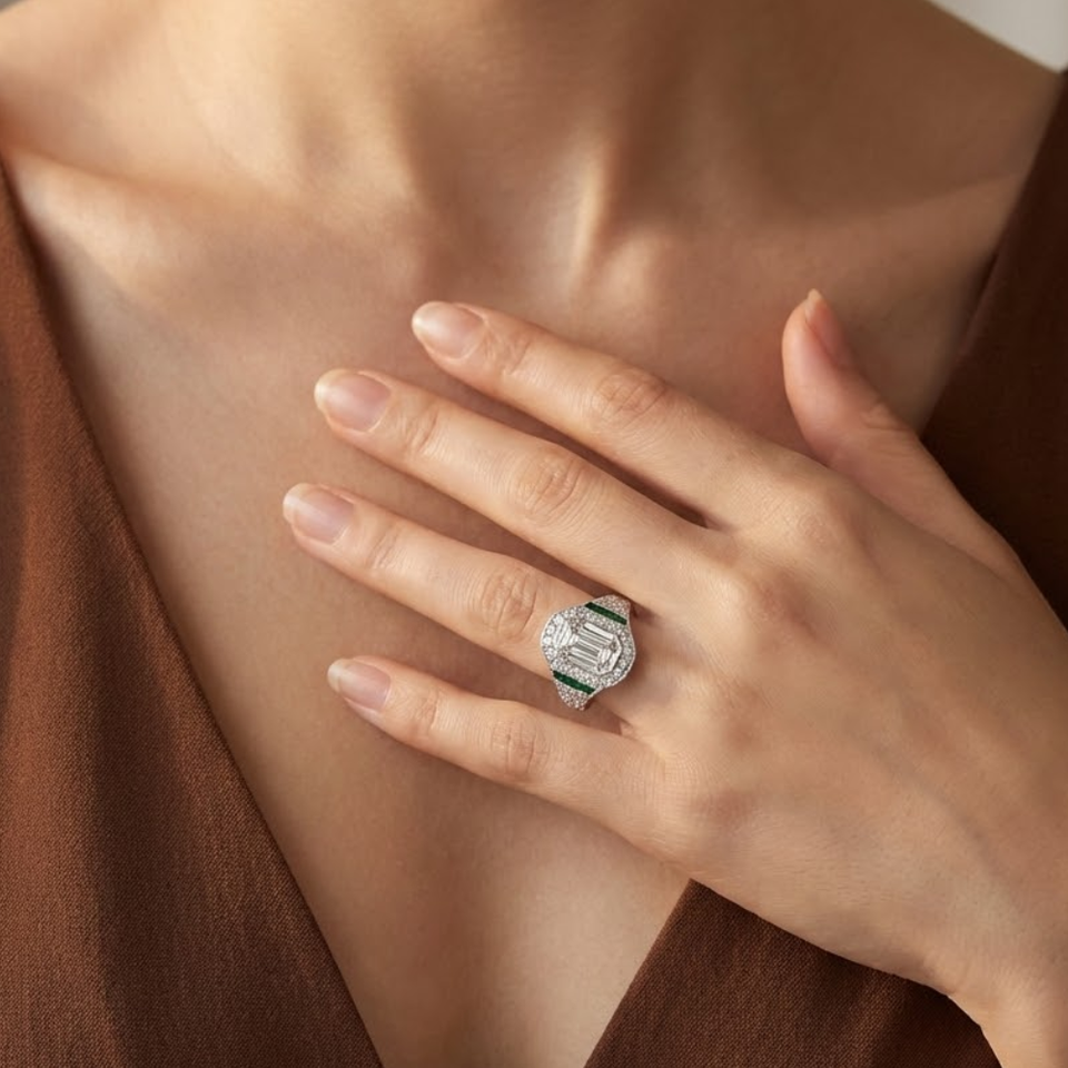 ชื่อสินค้า:แหวนเพชร 18k ประดับมรกต