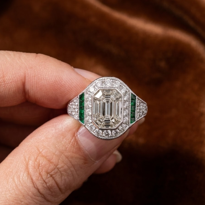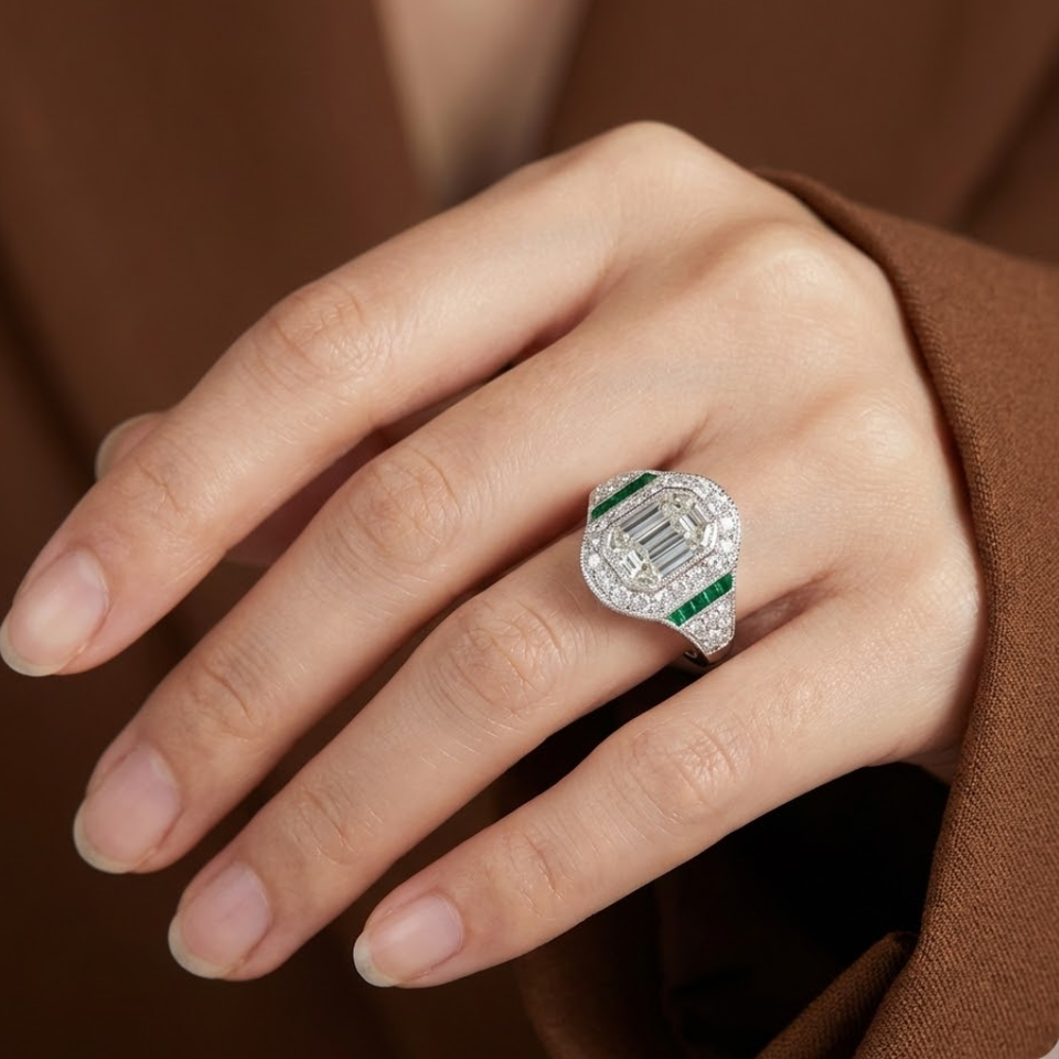 แหวนทองคำขาวแท้ 18k คุณภาพสูงจากโรงงานจีน ประดับเพชรแท้และพลอยมรกตทรงพาย สำหรับเป็นของขวัญวันเกิด
