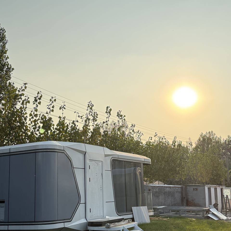 บ้านแคปซูลเหล็กสำหรับใช้ในโรงแรมบ้านสีเขียวห้องโดยสารแบบโมดูลาร์สุดหรูทันสมัย