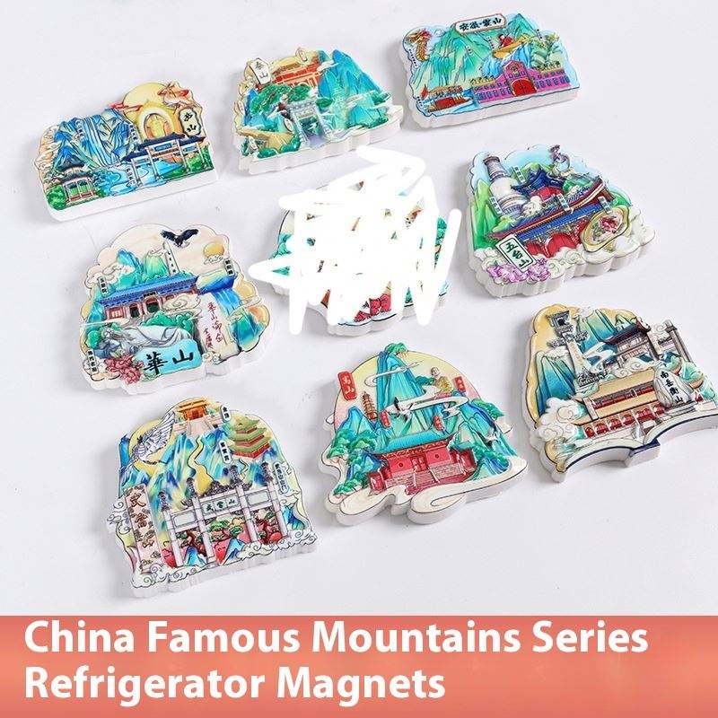 แม่เหล็กติดตู้เย็นรูปทรงอาร์ตเดโค ทำจากเรซิ่นรักษ์โลก ของที่ระลึกจากภูเขาชื่อดังของจีน ซีรีส์ภูเขาไท่ซาน หวงซาน ของขวัญสำหรับนักท่องเที่ยว ขนาดกลาง