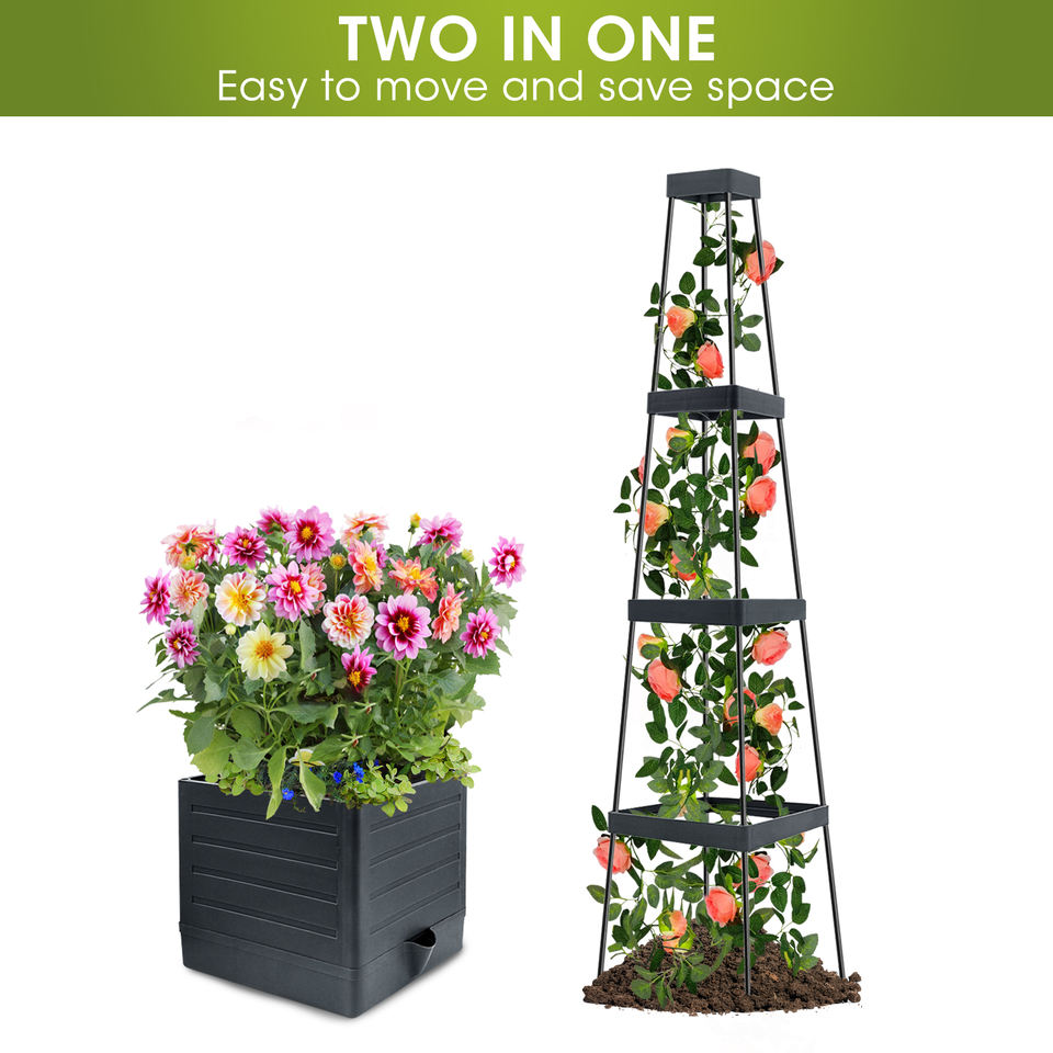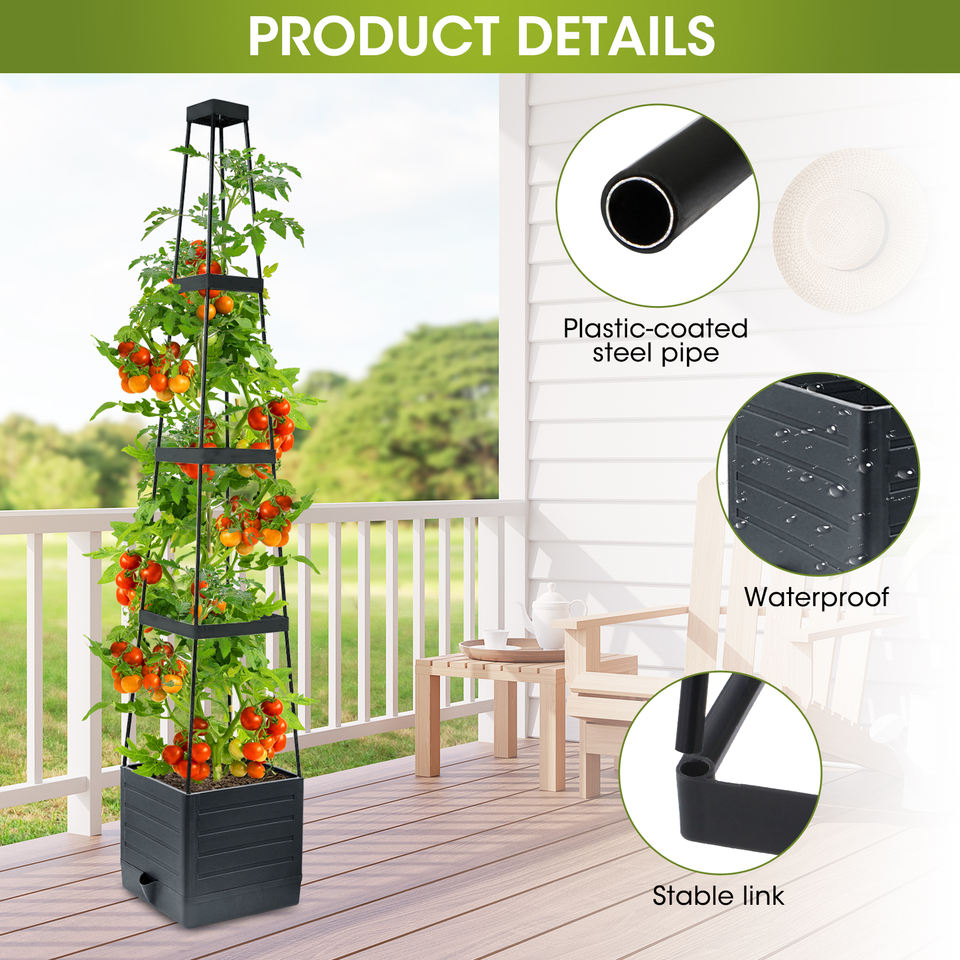 กล่องปลูกต้นไม้ PP สีเทาแบบใช้ซ้ำได้ ทนแดด สำหรับระเบียงและลานบ้าน