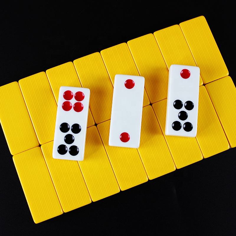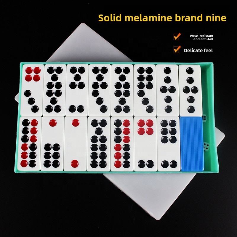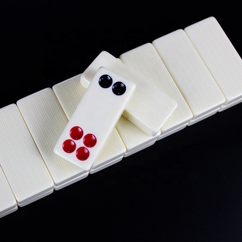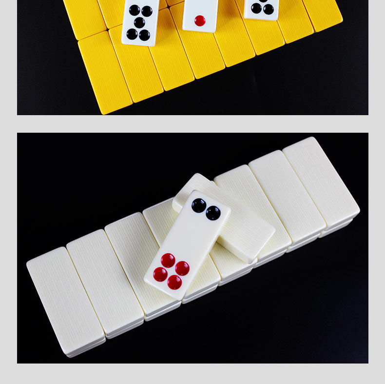 ชุดโดมิโนจีน (ไพ่ไพ่กาว) 32 ชิ้น | เกมจีนคลาสสิกสำหรับครอบครัวและงานปาร์ตี้ | จุดสีแดง/ดำ พื้นหลังสีเขียวกันลื่น
