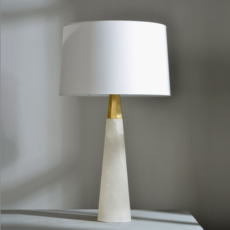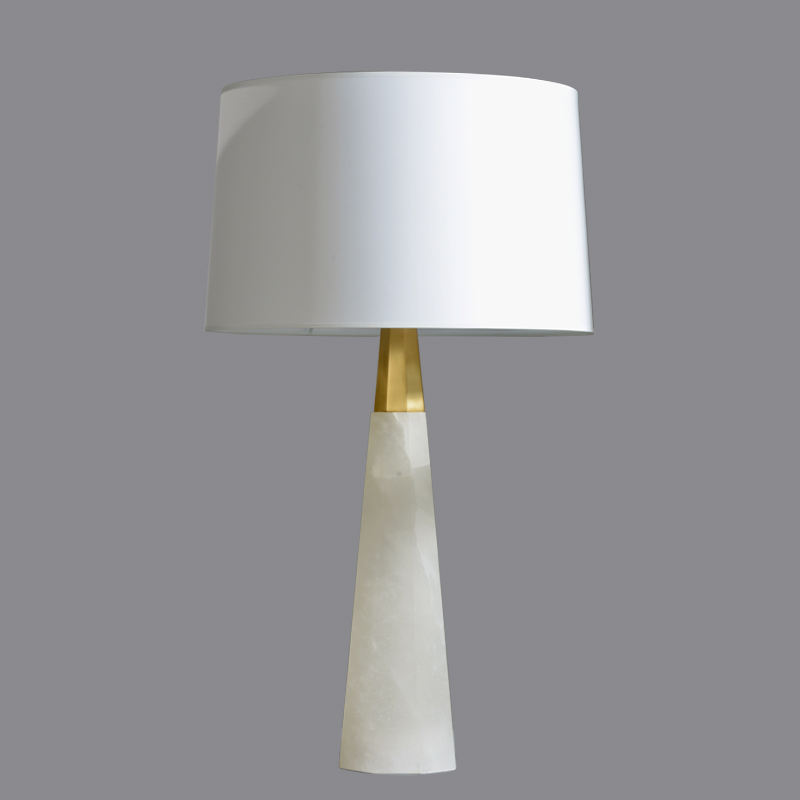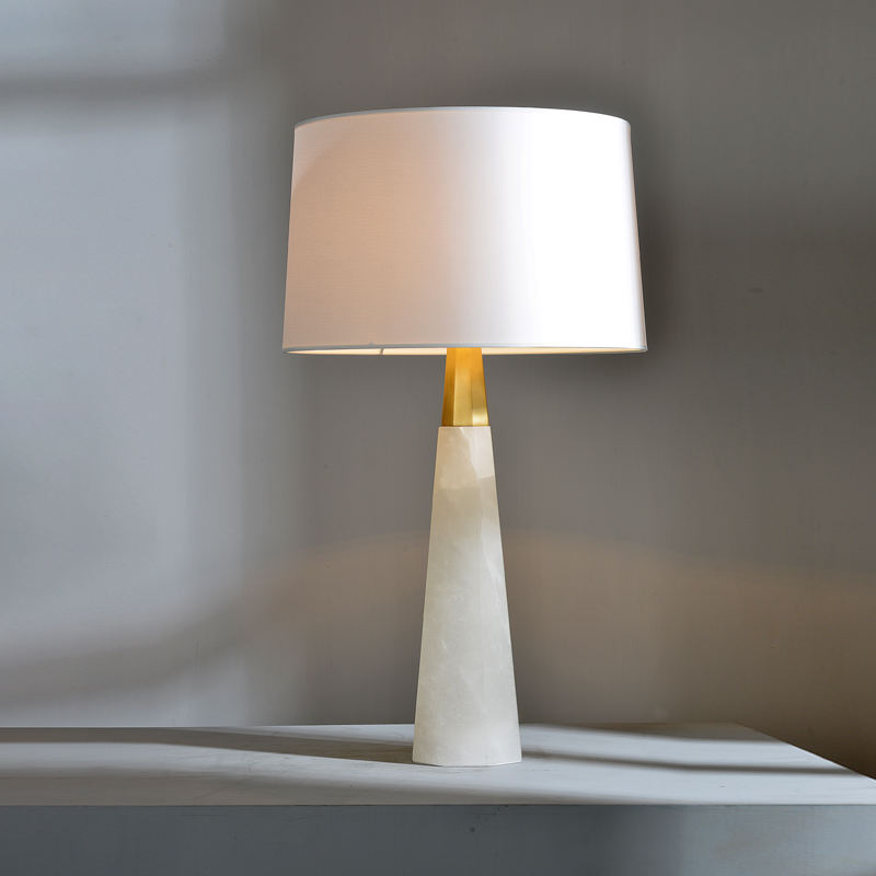 Chinese Factory Concise Cone Design White Jade Body With Metal Accessory and Fabric Lampshade Table Lamp Marble Led Desk Light