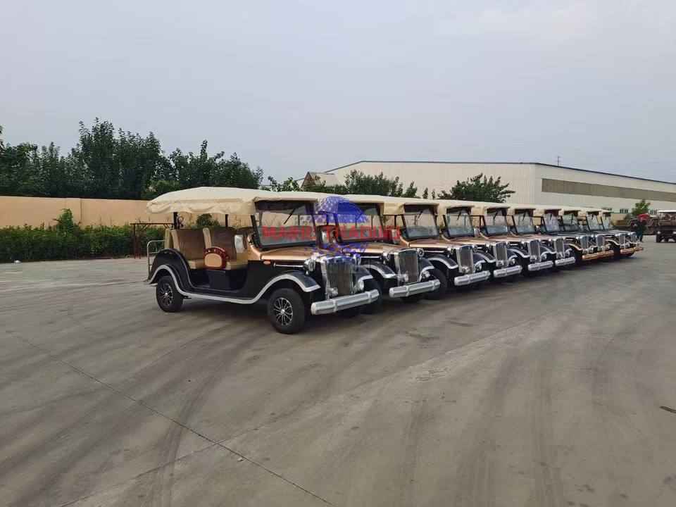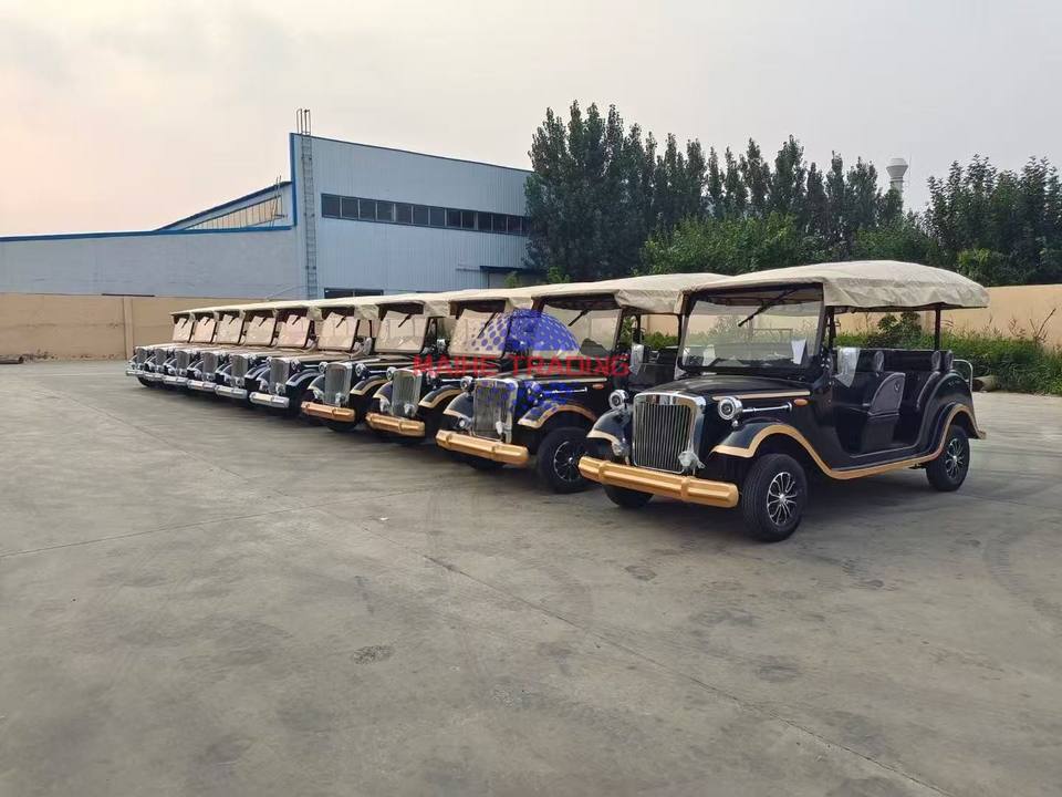 รถกอล์ฟไฟฟ้าขนาดเล็ก 6 ที่นั่ง 48v ราคาโรงงานจีน พร้อมแบตเตอรี่ตะกั่วกรด มอเตอร์ AC ความเร็ว 50 กม./ชม. แบบ 4+2 ที่นั่ง