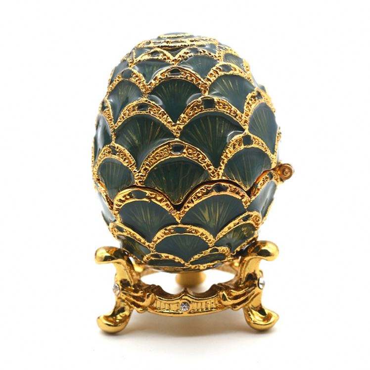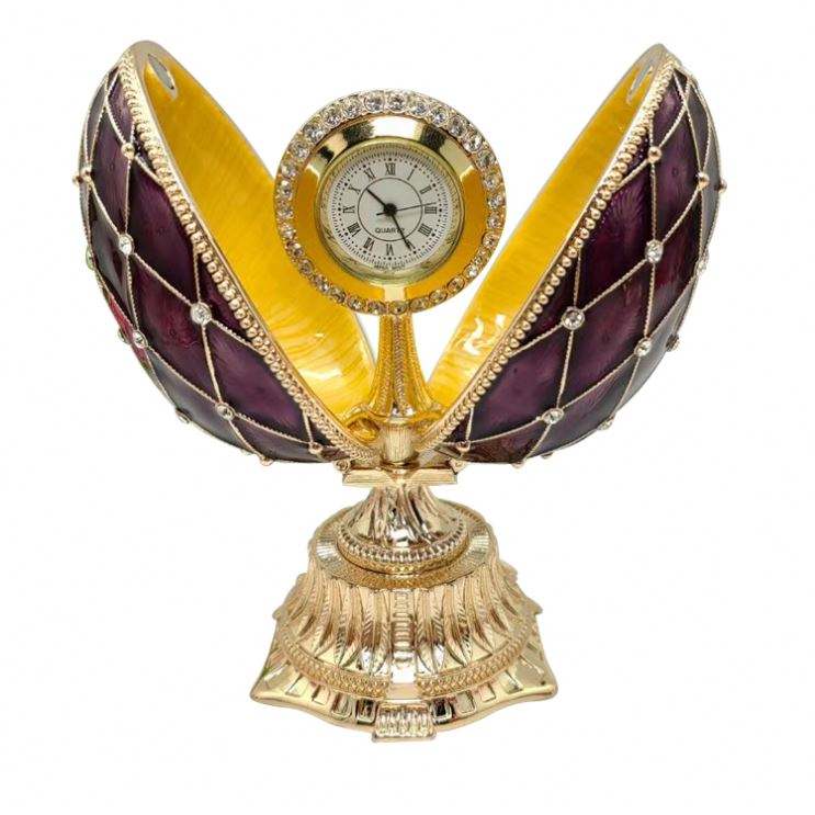 กล่องเครื่องประดับสุดหรูเคลือบโลหะหลายรูปแบบพร้อมนาฬิกาไข่ฟาแบร์จากรัสเซีย
