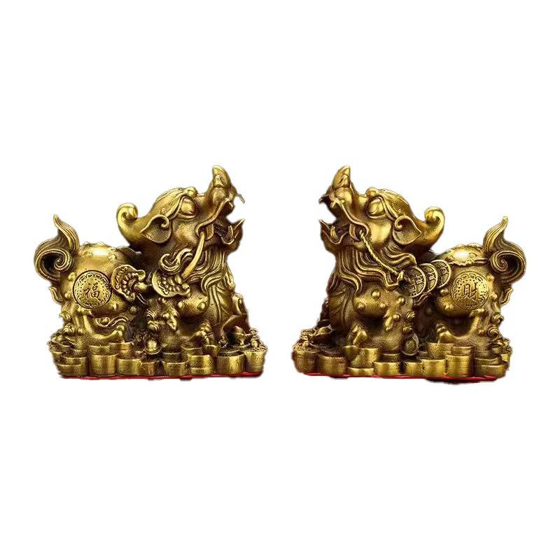 ชุดตุ๊กตามังกรทองเหลืองฮวงจุ้ยสีทองสำหรับตกแต่งบ้านสำนักงานและเป็นของขวัญ
