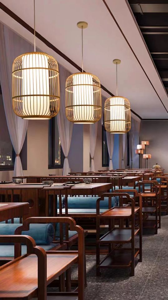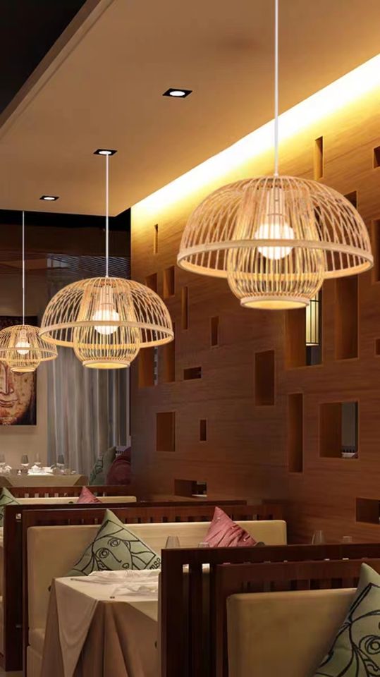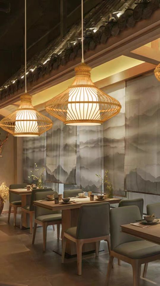 โคมไฟระย้าไม้ไผ่งานแฮนด์เมดสไตล์จีนโคมไฟแนวชนบทสำหรับร้านอาหารบ้านชาและอินน์โคมไฟศิลปะทำจากไม้ไผ่เรียบง่ายสุดสร้างสรรค์