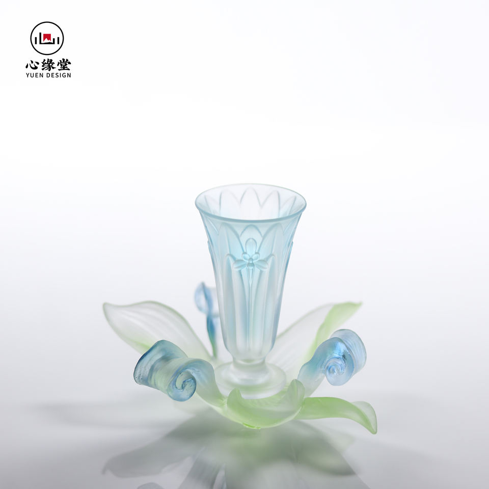ชุดถ้วยชาแก้วคริสตัล Liuli ดอกไม้งานทำมือชุดถ้วยชาดีไซน์ดอกไม้ของจีนแฟชั่นสิบสองถ้วยชากล้วยไม้