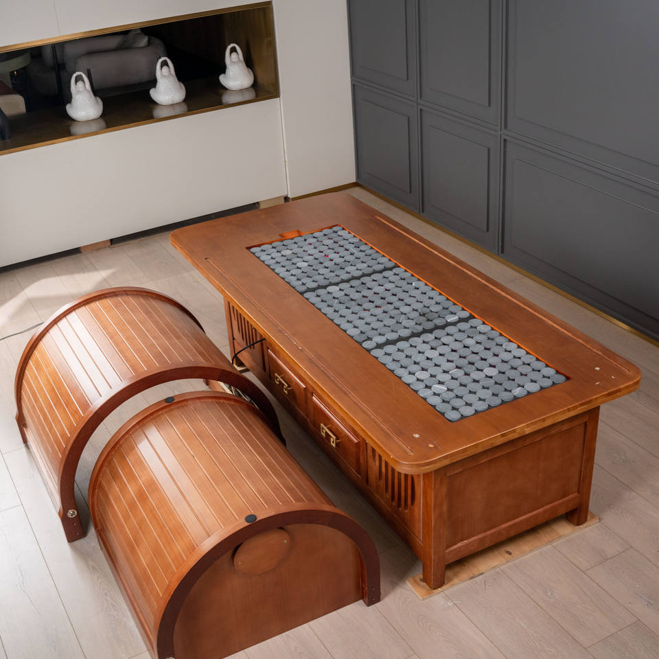 เตียงสปาสมุนไพรจีน โมกซิบัสชั่น สำหรับกายภาพบำบัด ทำจากไม้ ปรับระดับได้ เหมาะสำหรับใช้ในห้องนั่งเล่น โรงแรม คุณภาพสูง ใช้กับสมุนไพรโมกซา