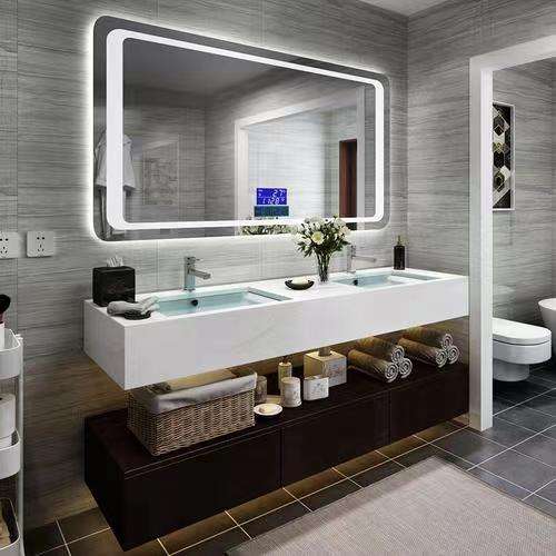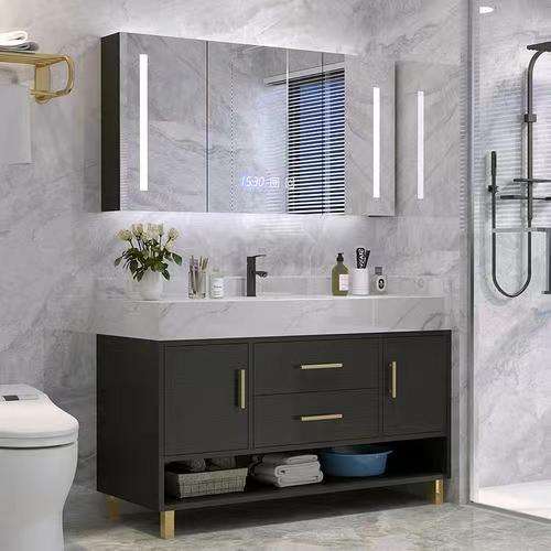 ตู้ห้องน้ำสำเร็จรูปสไตล์โมเดิร์นแบบจีน ผลิตจากไม้อัด/MDF กันน้ำ พร้อมก๊อกน้ำและอ่างล้างหน้า สำหรับใช้ในอพาร์ตเมนต์