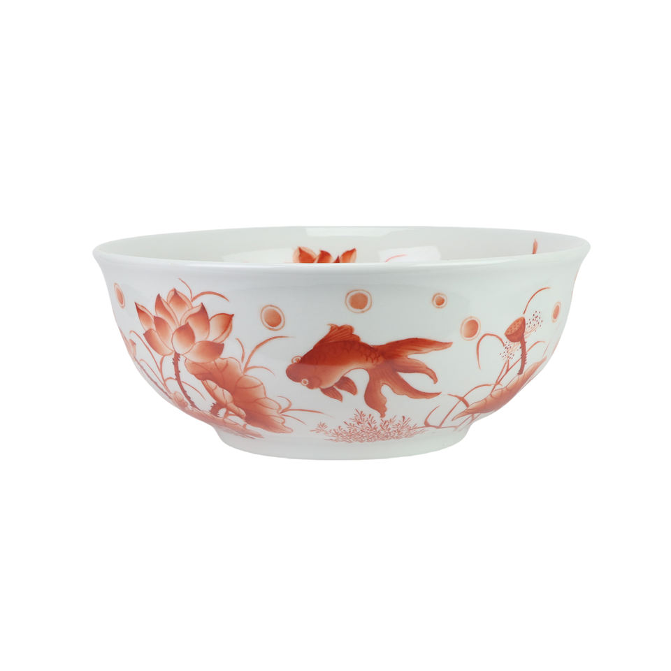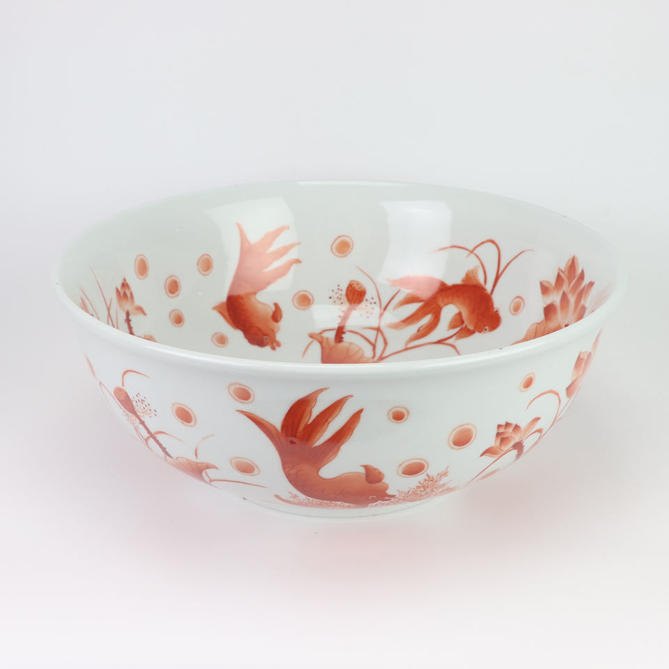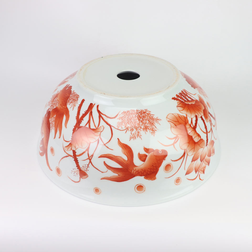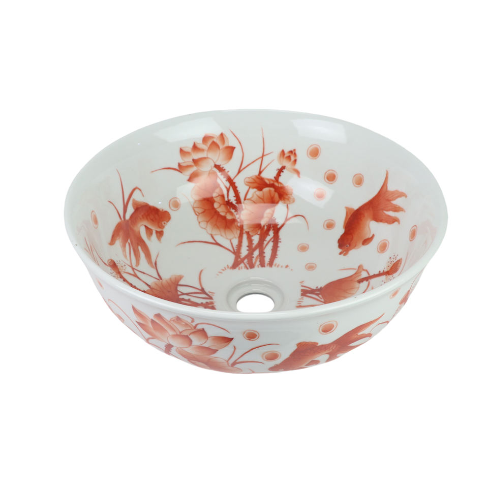 อ่างเซรามิกสไตล์เรโทรสีเเดงโกลด์สไตล์เรโทรอ่างศิลปะรูปปลาสีแดงอ่างน้ำแบบกลมอ่างล้างหน้าท็อปห้องน้ำ
