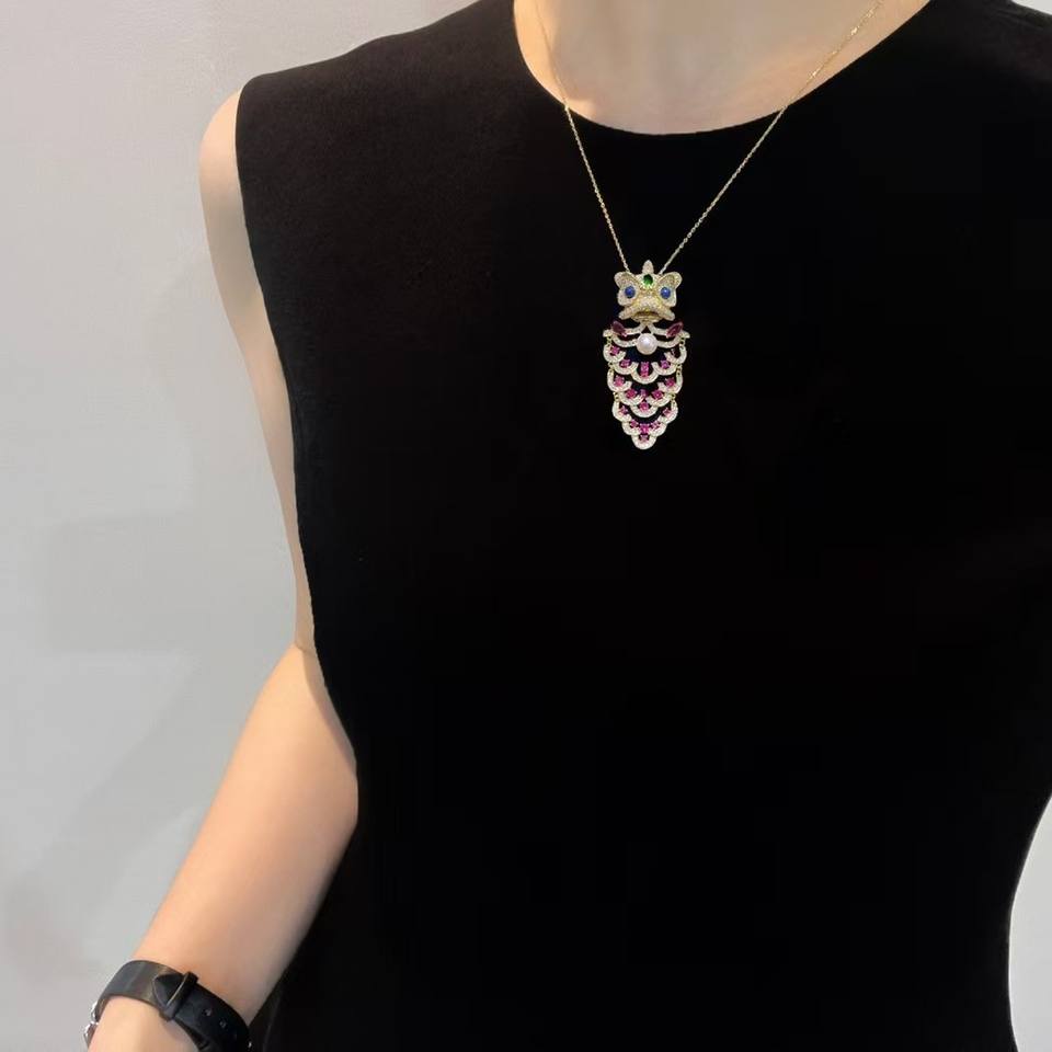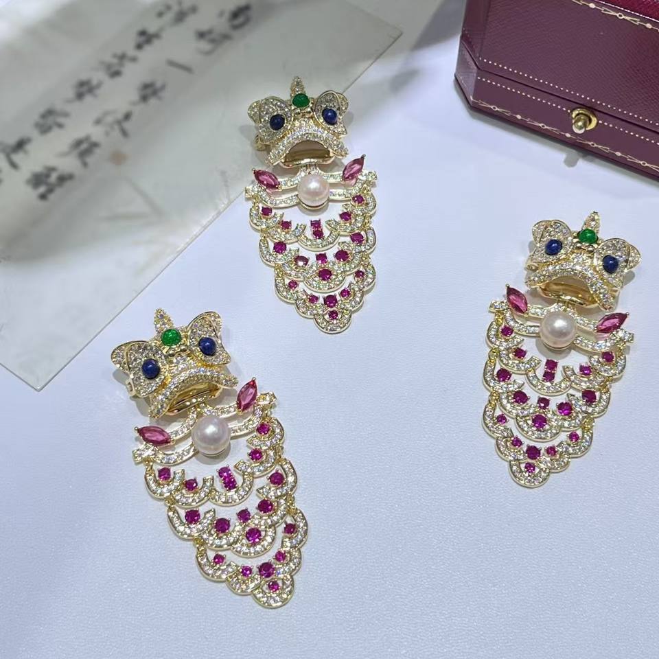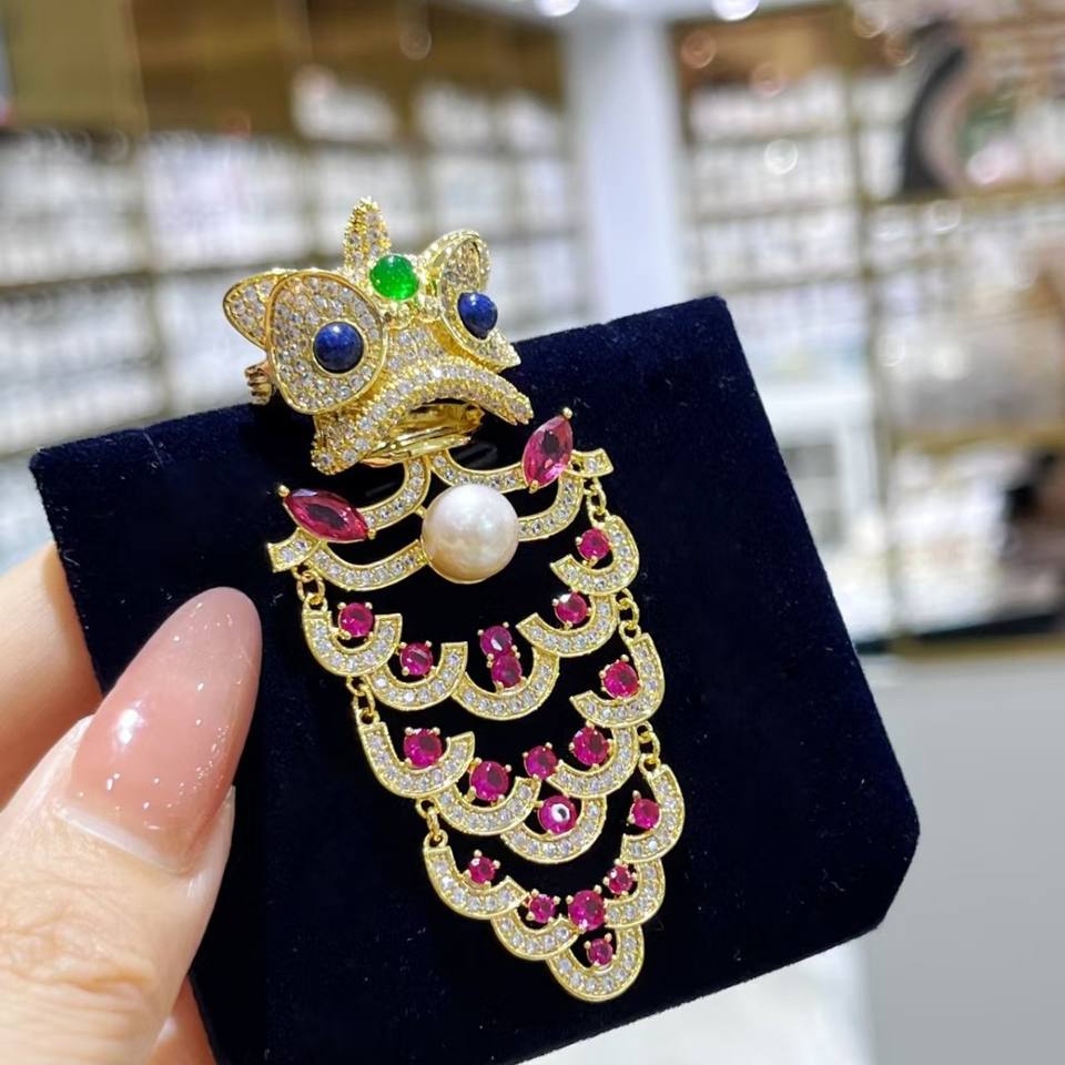 เข็มกลัดคริสตัลสไตล์จีนโบราณ ลายสิงโตเต้นรำ แบบติดปกเสื้อ สำหรับผู้ชายและผู้หญิง แฟชั่น 1 คู่