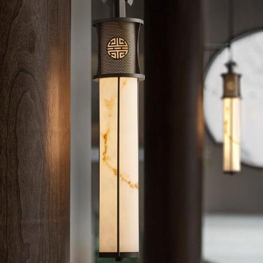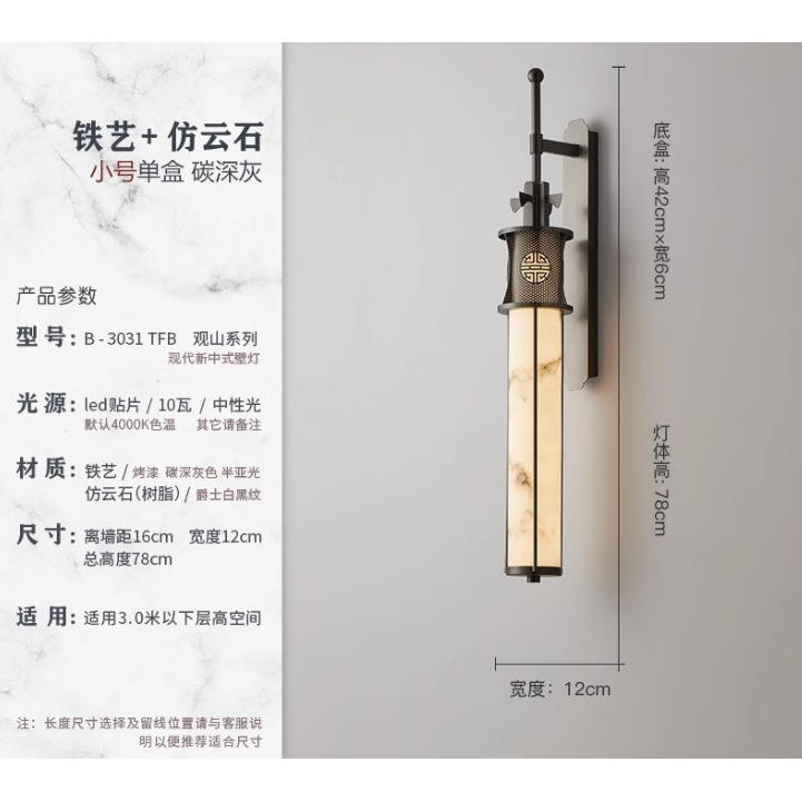 โคมไฟติดผนังหินอ่อน LED สไตล์จีนแบบใหม่ ดีไซน์ทรงยาว สำหรับตกแต่งห้องนั่งเล่นในวิลล่า ปรับความสว่างได้ สินค้าขายดี