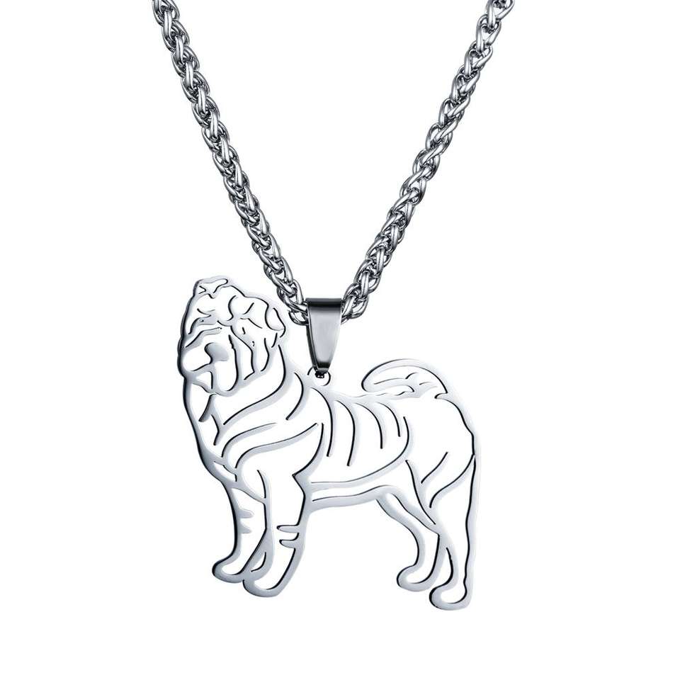 จี้ห้อยคอรูปสุนัขพันธุ์ชาร์เพย์แบบจีน ทำจากโลหะผสม สร้อยคอแฟชั่นสไตล์จีน ของที่ระลึกสำหรับวันครบรอบ