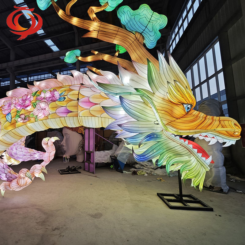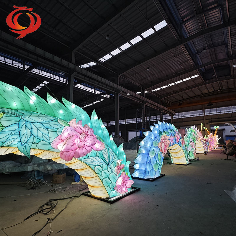 โคมไฟมังกรผ้าไหมจีนโคมไฟเทศกาลซิกแซกผลิตจากผู้ผลิตสำหรับงานปาร์ตี้จบการศึกษารอมฎอน