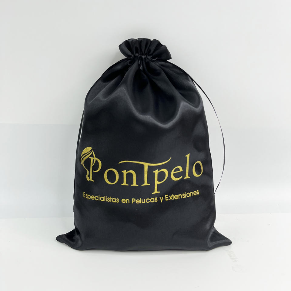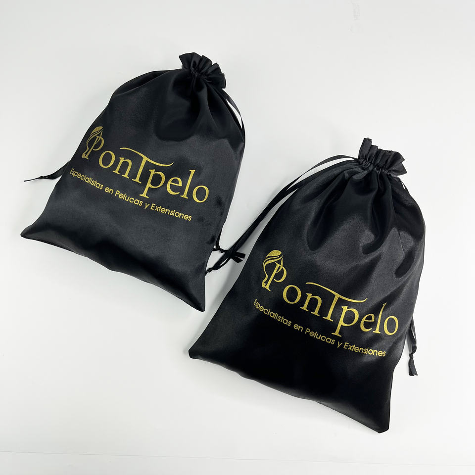 ถุงผ้าไหมจีนพิมพ์โลโก้ตามสั่ง ถุงผ้ารูดเชือก ถุงใส่เครื่องมือจัดแต่งทรงผม ถุงผ้าซาตินใส่ของขวัญสำหรับผม