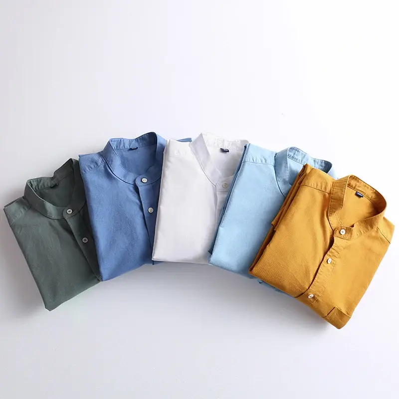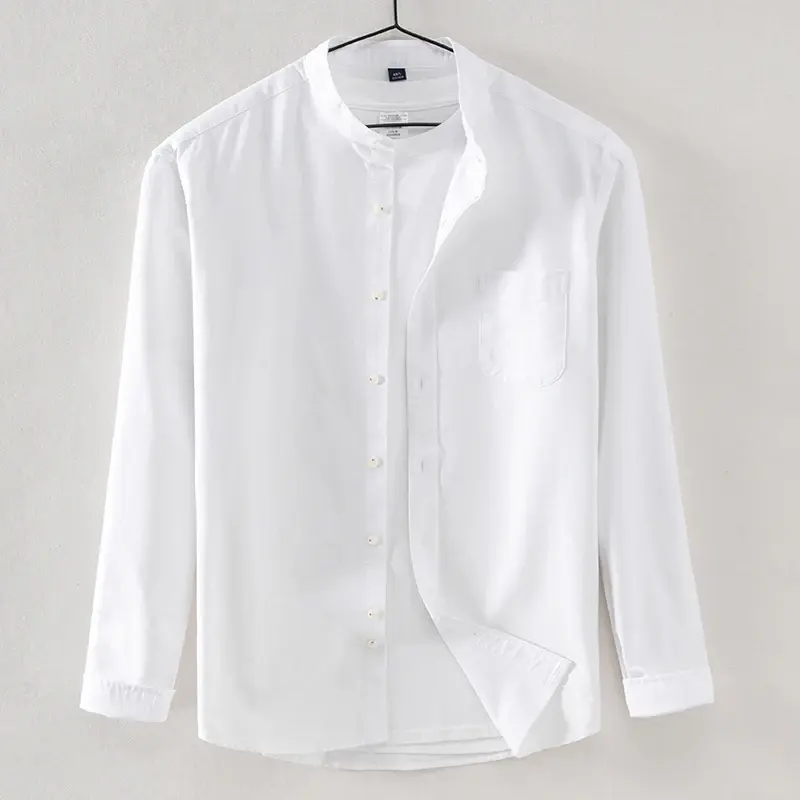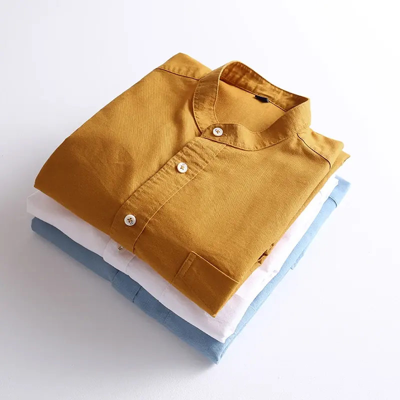 Chinese Style 100% Cotton Turn-down Collar Breathable Yarn Dyed Spring Men's Casual Long-sleeve Shirts