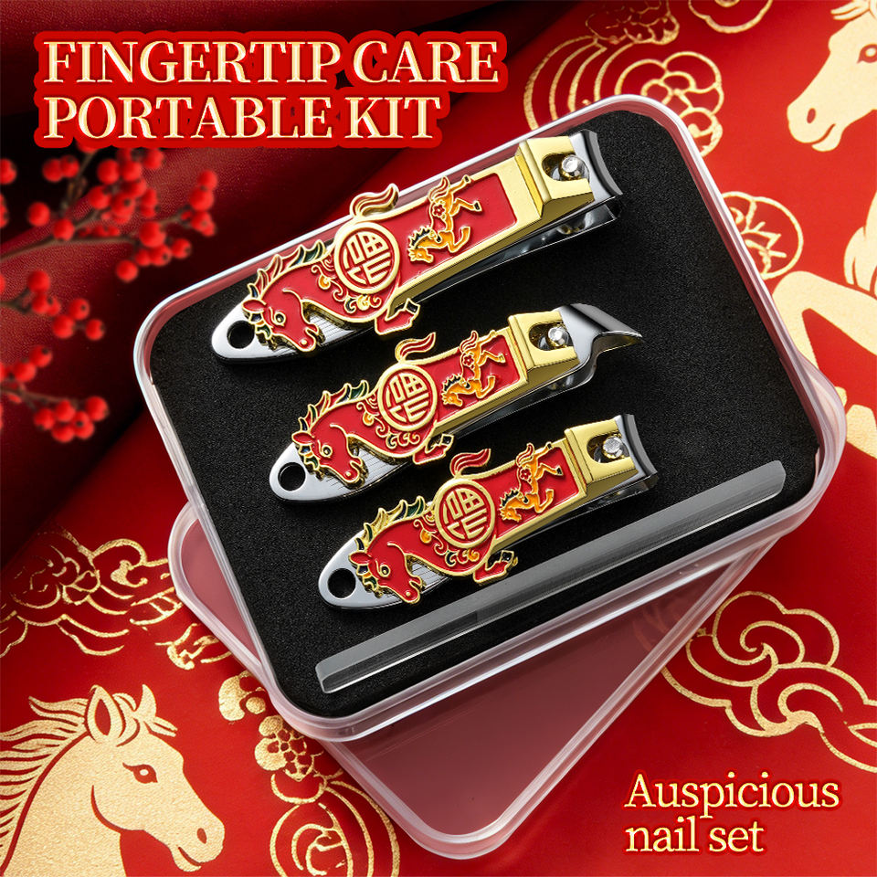 ชุดดูแลเล็บเงินมงคลสไตล์จีน ลายมังกรทองแดง 4 ชิ้น ชุดทำเล็บ ตะไบเล็บแก้วสแตนเลสโค้ง
