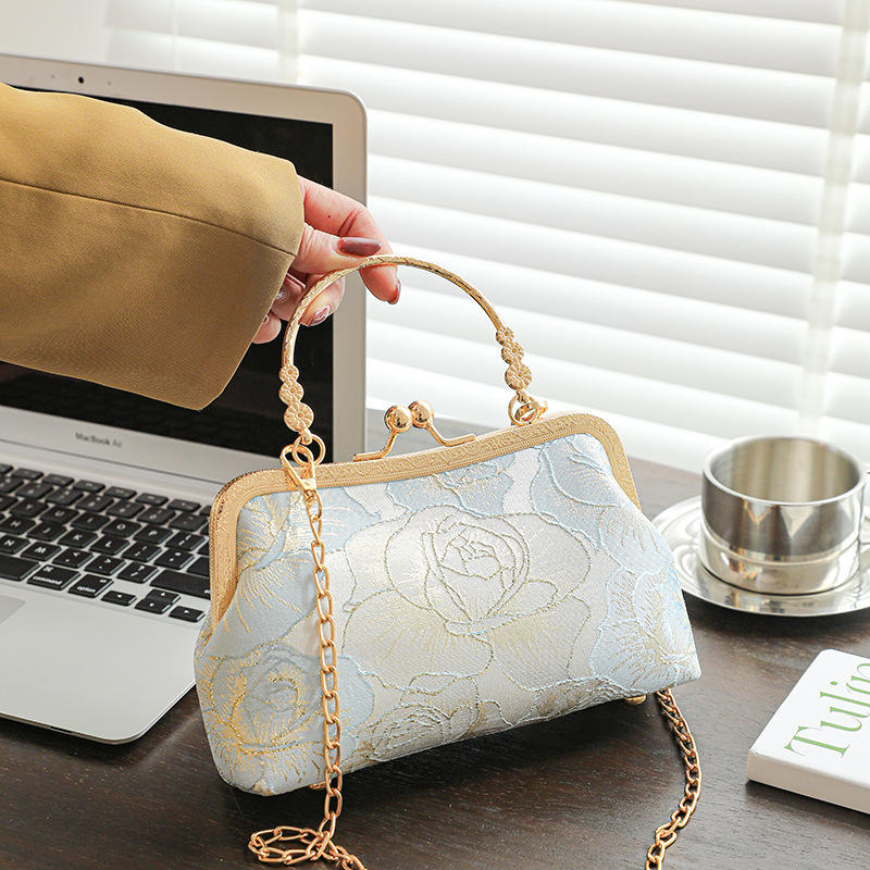 กระเป๋าถือแบบจีนสไตล์กี่เพ้าสำหรับงานเลี้ยงตอนเย็น ขนาดมินิ สะพายข้างได้ ใช้ได้สามแบบ ดีไซน์สวยงาม คุณภาพสูง ผลิตจากโพลีเอสเตอร์ สายโซ่ลายดอกไม้ เหมาะสำหรับเป็นของขวัญ