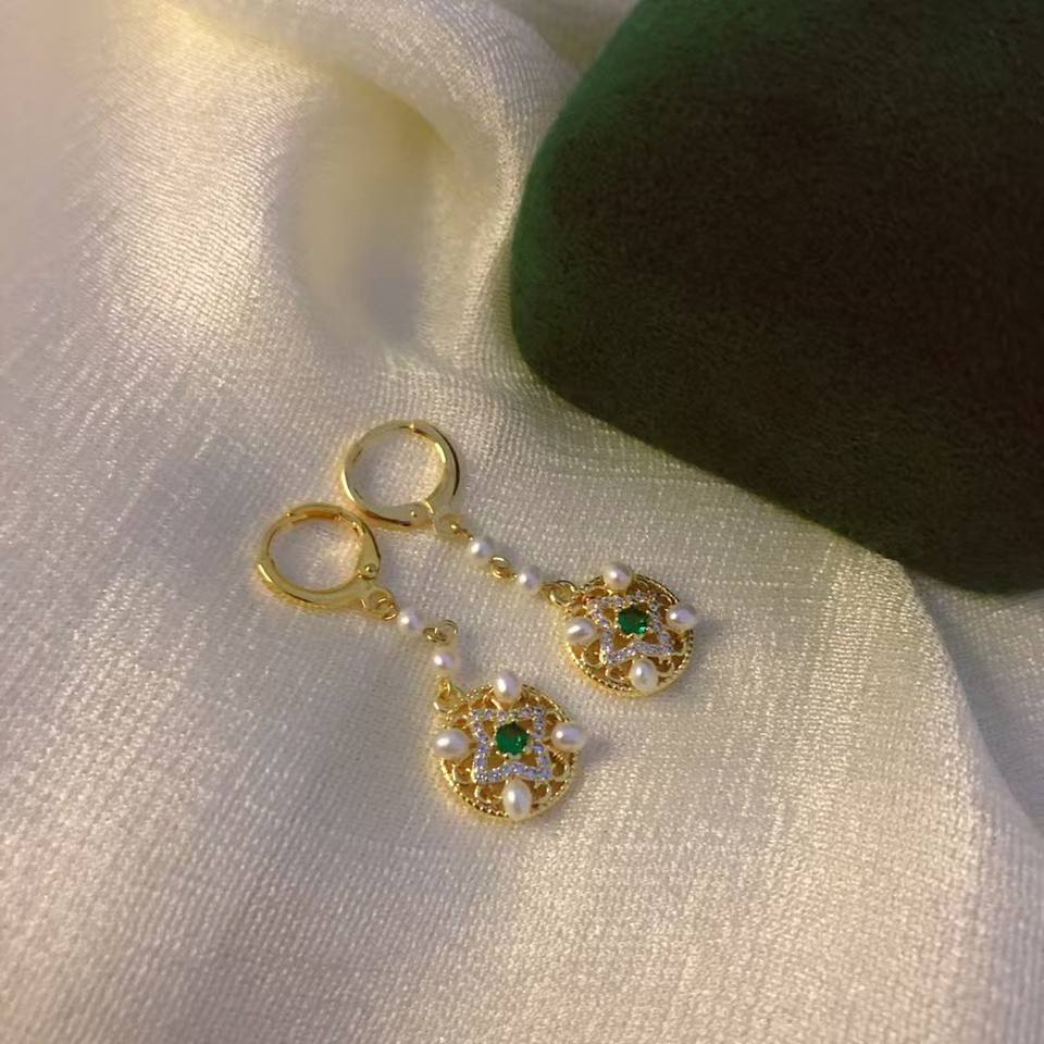ต่างหูห้อยสไตล์จีนสำหรับผู้หญิง จี้พวงกุญแจไข่มุกน้ำจืดแบบจีนชิค งานแฮนด์เมด ดีไซน์ซองกลวง เครื่องประดับแฟชั่น