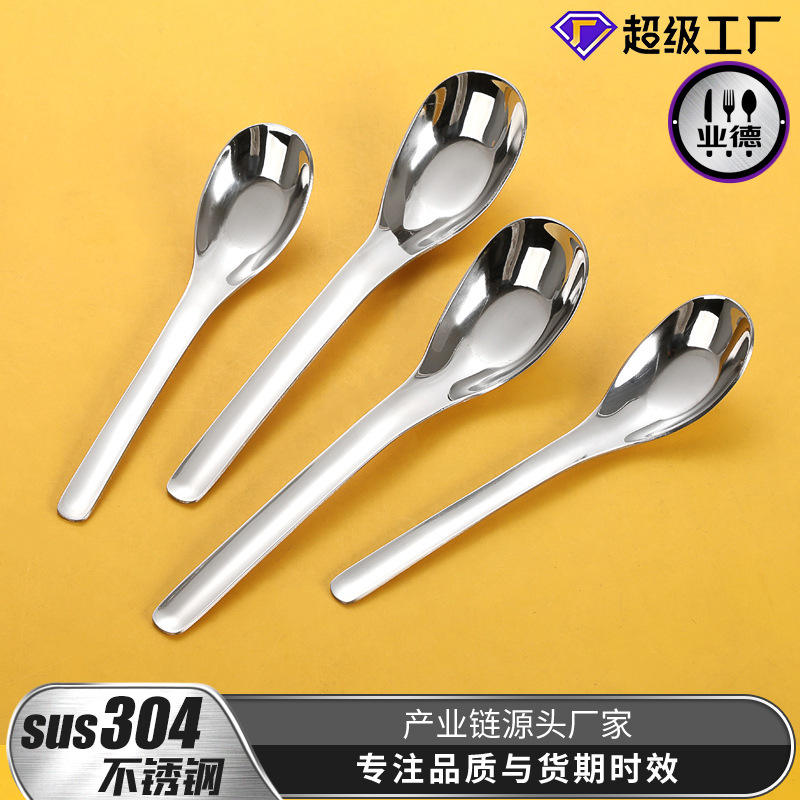 ช้อนสแตนเลส 304 แบบจีน ทรงแบน สำหรับป้อนอาหารเด็ก ใช้ในโรงอาหาร สีพื้น ดีไซน์ทรงตรง