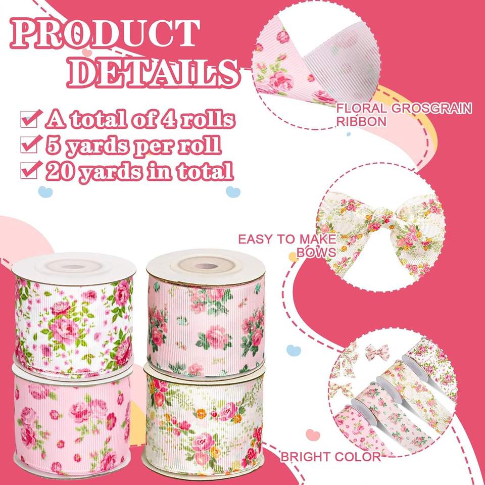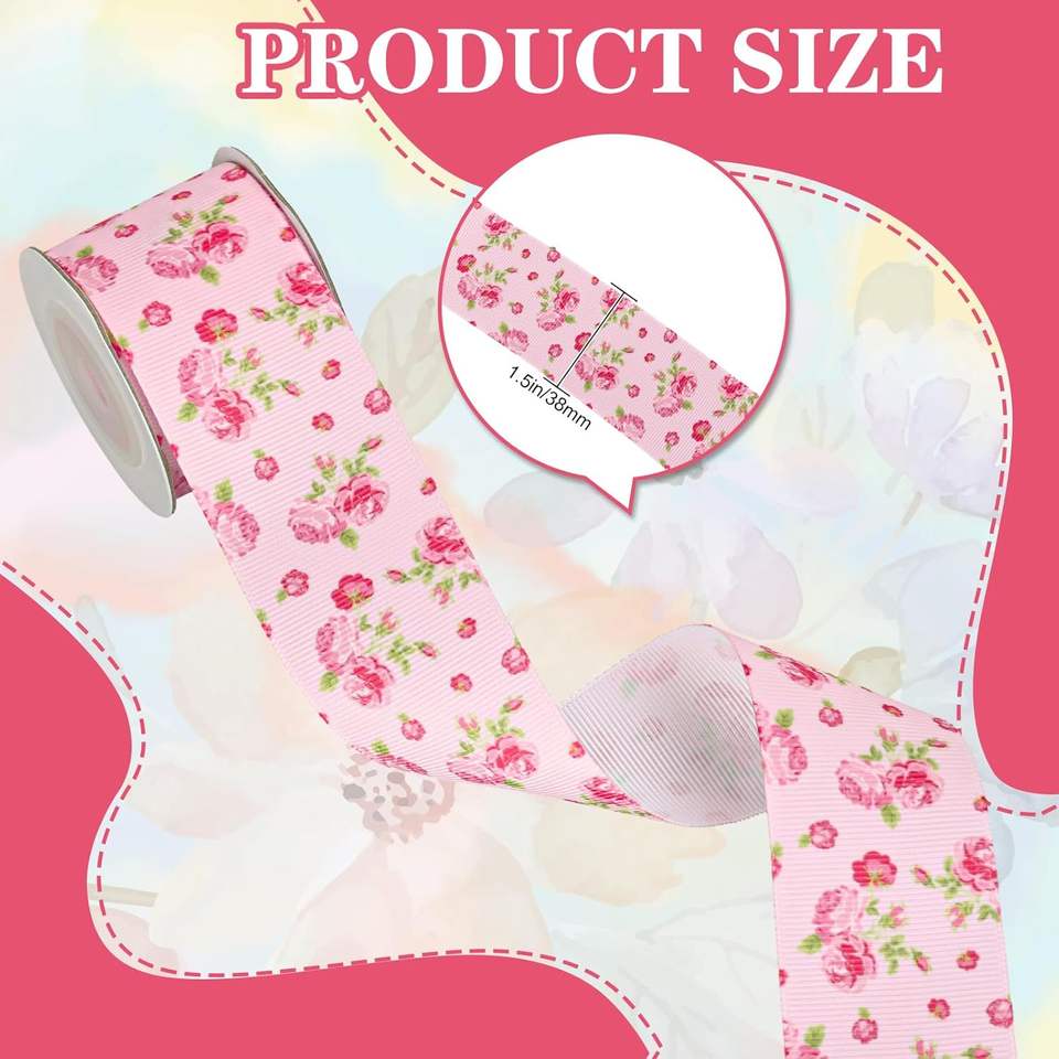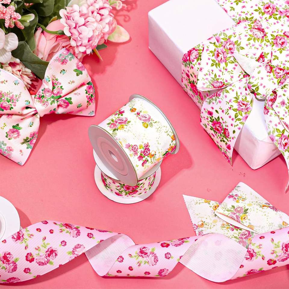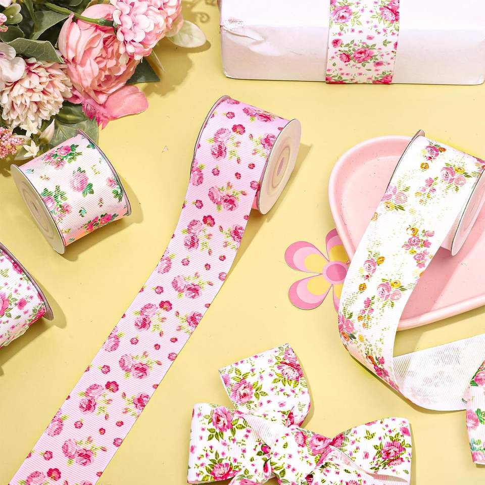 ริบบิ้นพิมพ์ลายดอกไม้สไตล์จีนแบบสองด้านสำหรับห่อของขวัญ