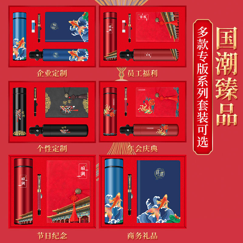 ชุดของขวัญสไตล์จีน สมุด ปากกา ร่ม ขวดน้ำ ของที่ระลึกธุรกิจ โลโก้สั่งทำ ของพรีเมี่ยมสำหรับสำนักงาน