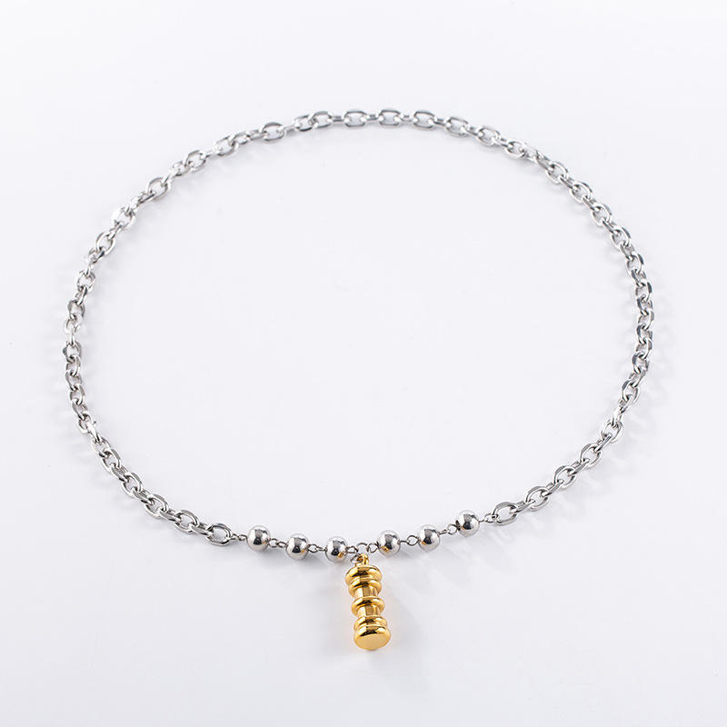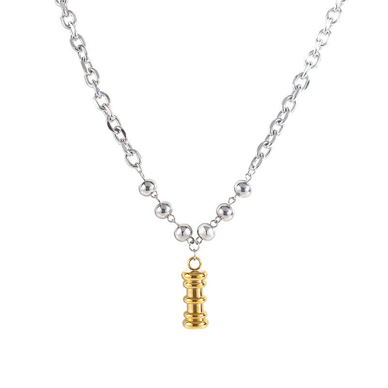 สร้อยคอโลหะสไตล์มินิมอลแบบจีน โซ่ไทเทเนียมสตีล จี้ทรงกระบอกสีทองนำโชค ของขวัญเครื่องประดับ