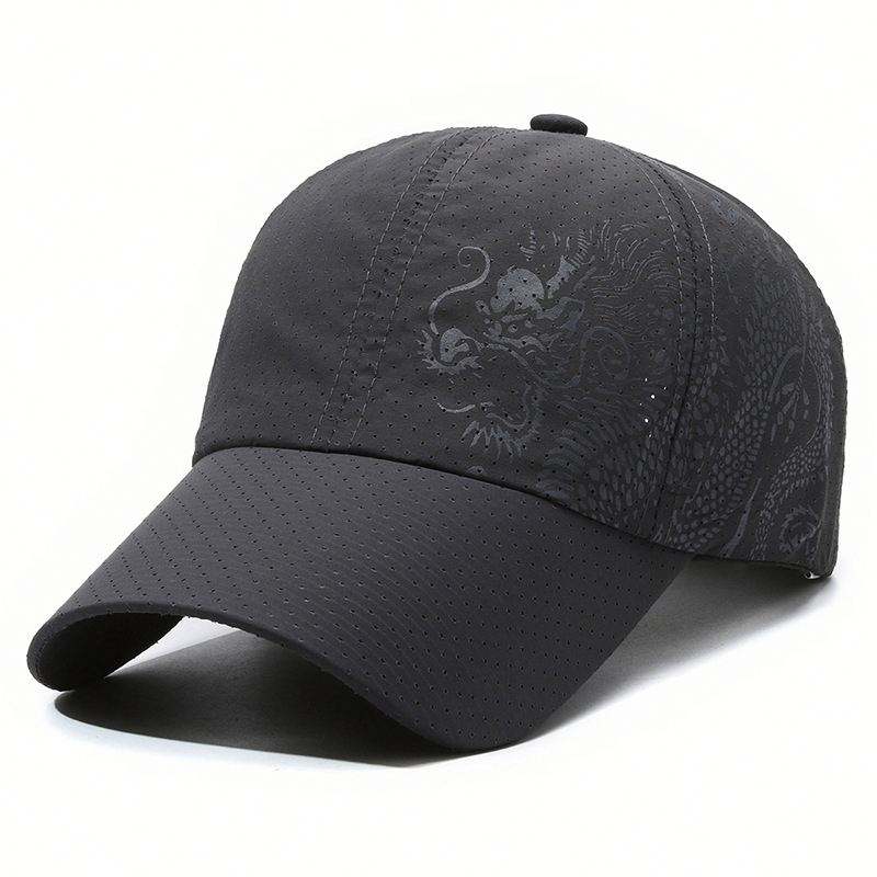 หมวกเบสบอลมังกรพิมพ์ลายต้นฉบับสไตล์จีนหมวกเบสบอลผ้าตาข่ายแห้งเร็วทำจากโพลีเอสเตอร์สำหรับผู้ชาย