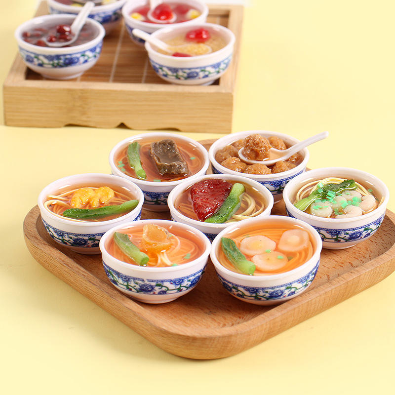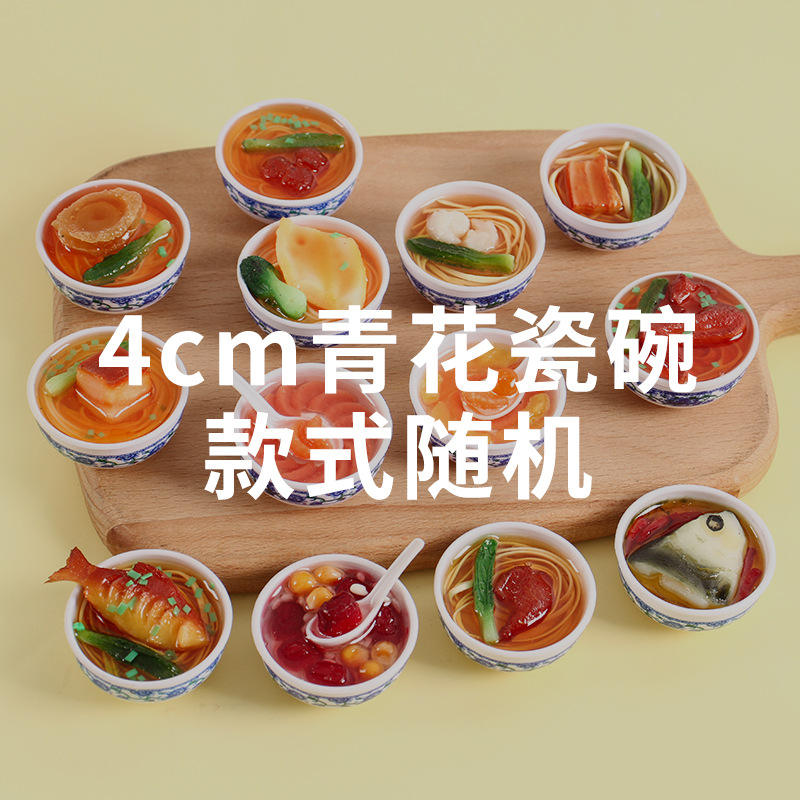 ชามเล็กสไตล์จีน ทำจากพีวีซี ลายพอร์ซเลนสีน้ำเงินขาว สำหรับเล่นทำอาหาร ของเล่นจำลองอาหาร ชามจิ๋ว ของตกแต่ง