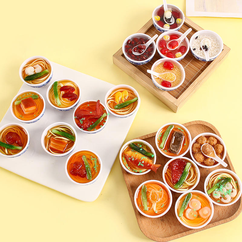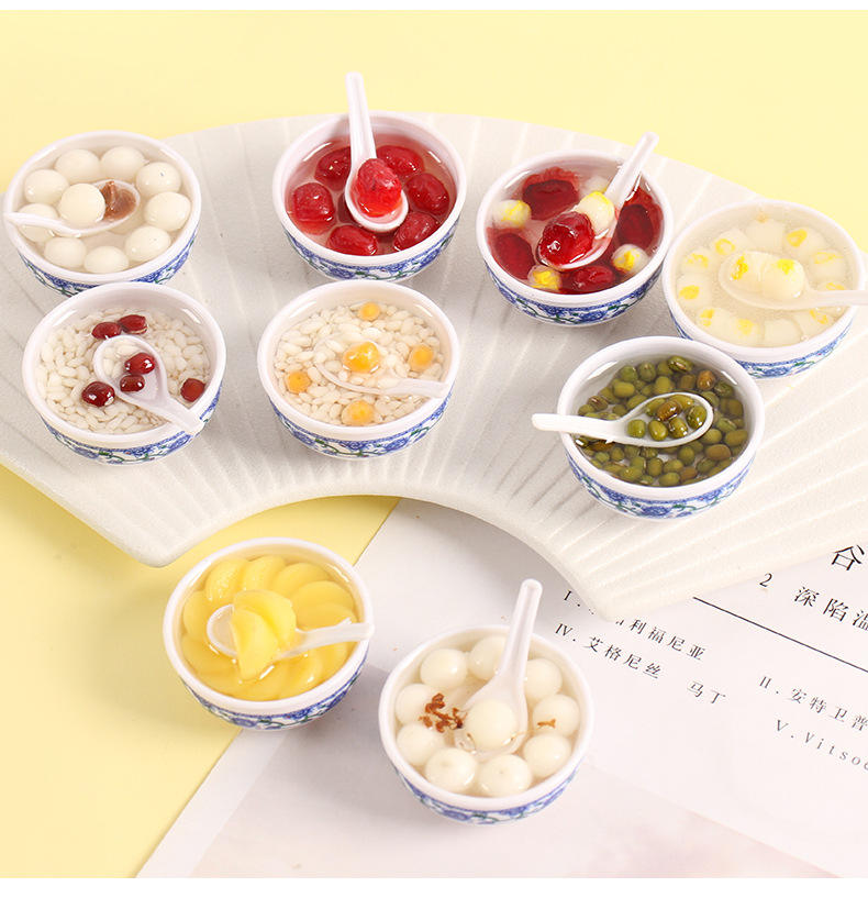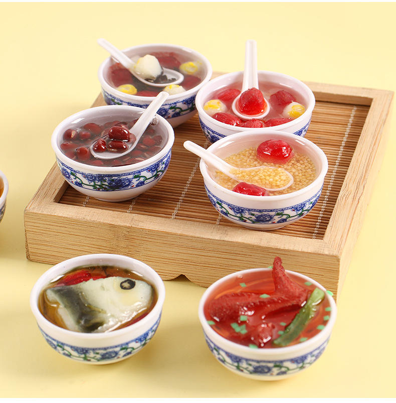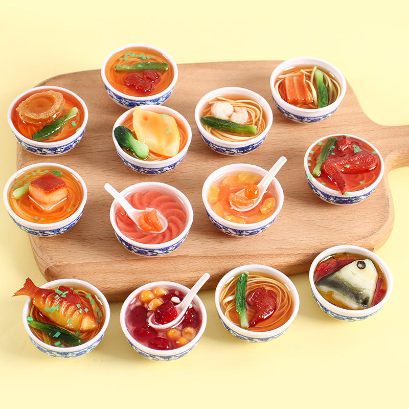โมเดลอาหารจำลองครัวจีนสไตล์พีวีซี งานฝีมือเรซิ่นลายครามสีน้ำเงินขาว ของตกแต่งติดตู้เย็นแบบแม่เหล็ก