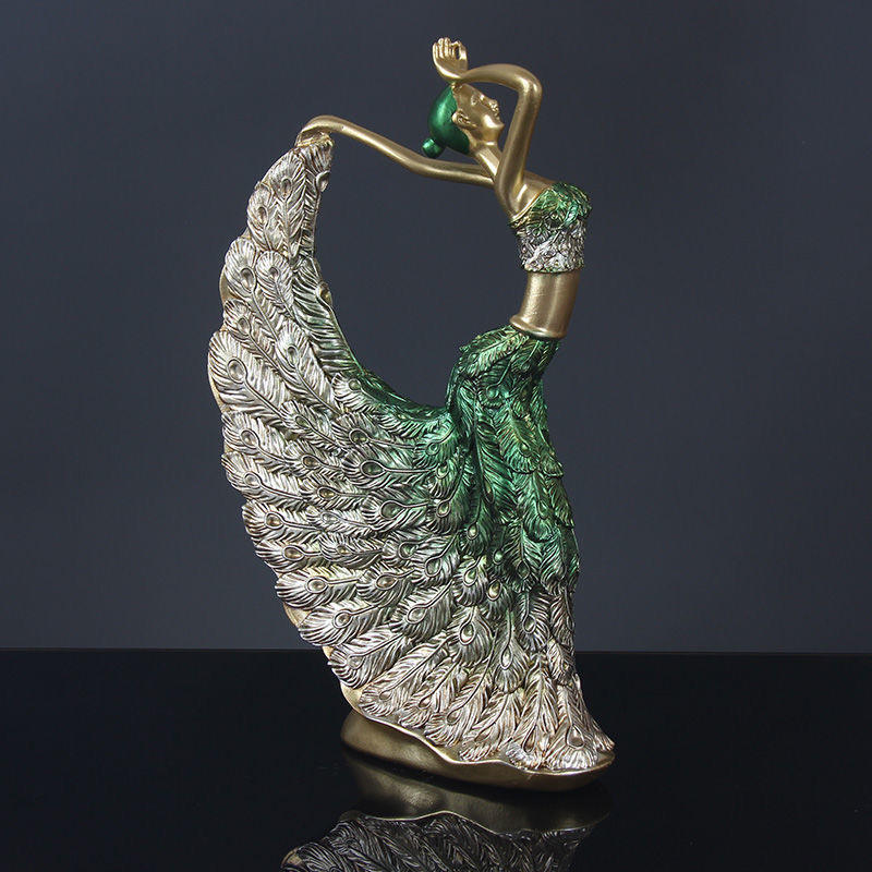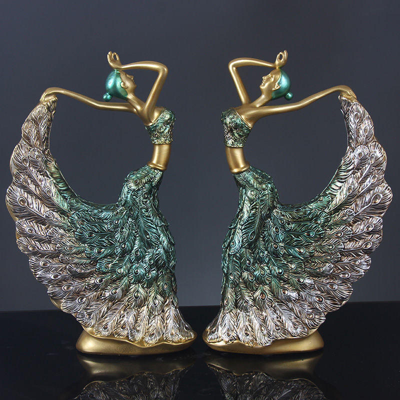 รูปปั้นนักเต้นระบำนกยูงสไตล์จีน ของตกแต่งบ้านสุดหรู งานประติมากรรมทองเหลืองและทองแดง ของตกแต่งโต๊ะทำงาน