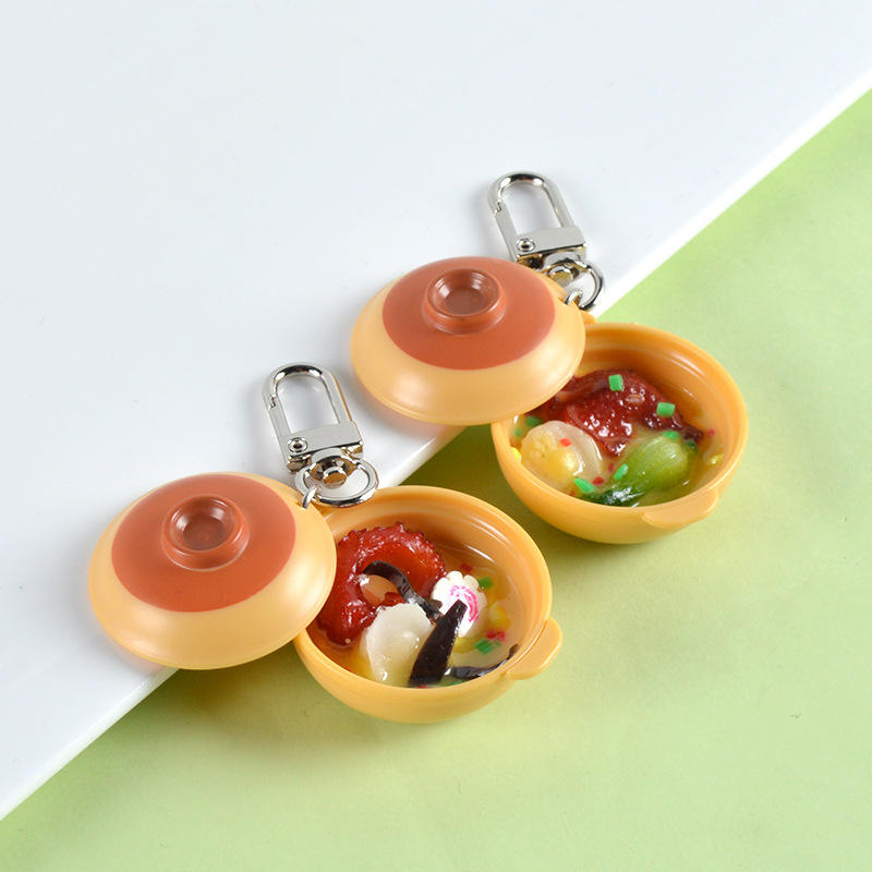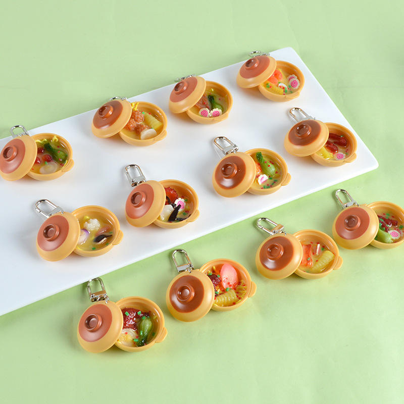 พวงกุญแจหม้อดินเผาจำลองสไตล์จีน จี้หม้อดินเผาขนาดเล็ก ของเล่นจำลองอาหาร ของตกแต่งหม้อดินเผา