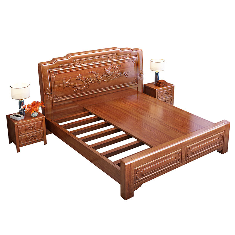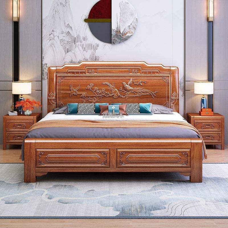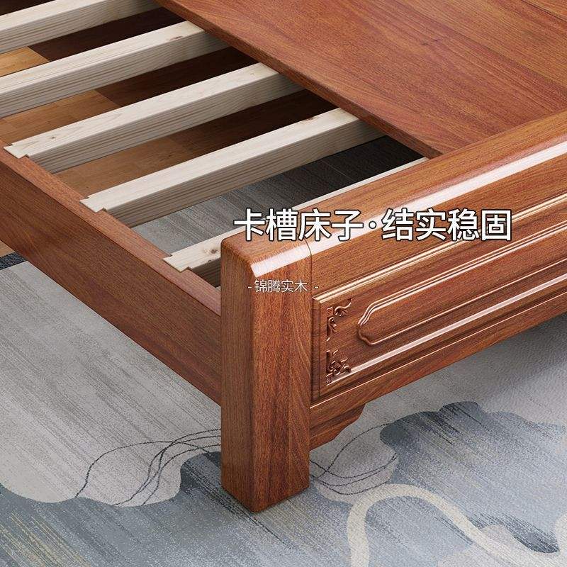 เตียงคู่ไม้โรสวูดสไตล์จีน ขนาด 1.5 ม. 1.8 ม. แกะสลักด้วยมือ โครงสร้างแบบเดือยและร่อง เตียงแบบแท่น เฟอร์นิเจอร์ห้องนอน