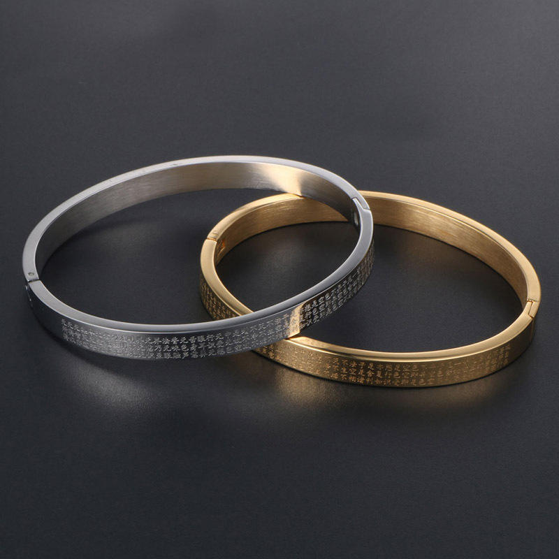 สร้อยข้อมือโลหะไทเทเนียมสไตล์จีนสไตล์มินิมอลลิสต์24K เคลือบทองรูปหัวใจดีไซน์พระสูตรสำหรับ SZ020ผู้ชายและผู้หญิง