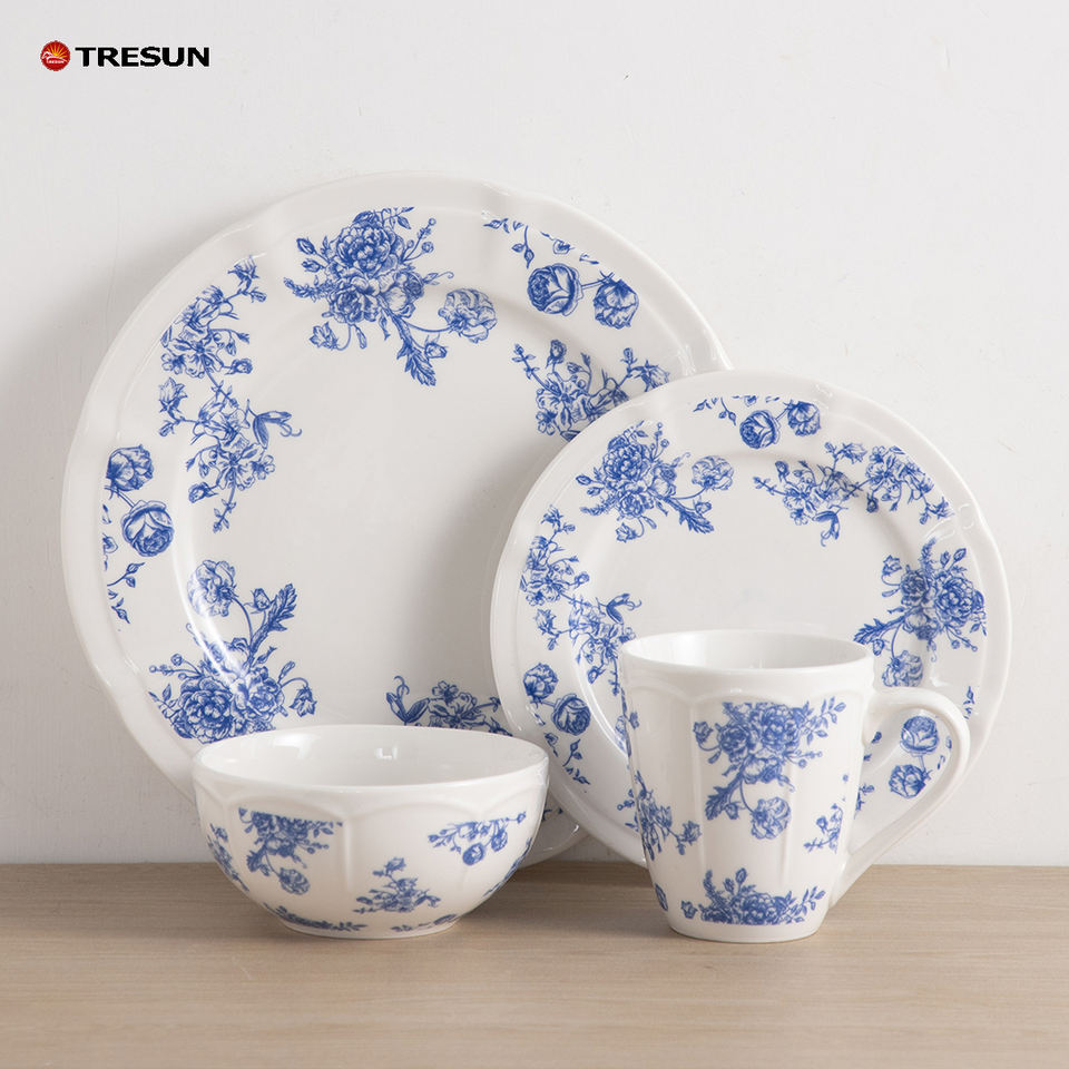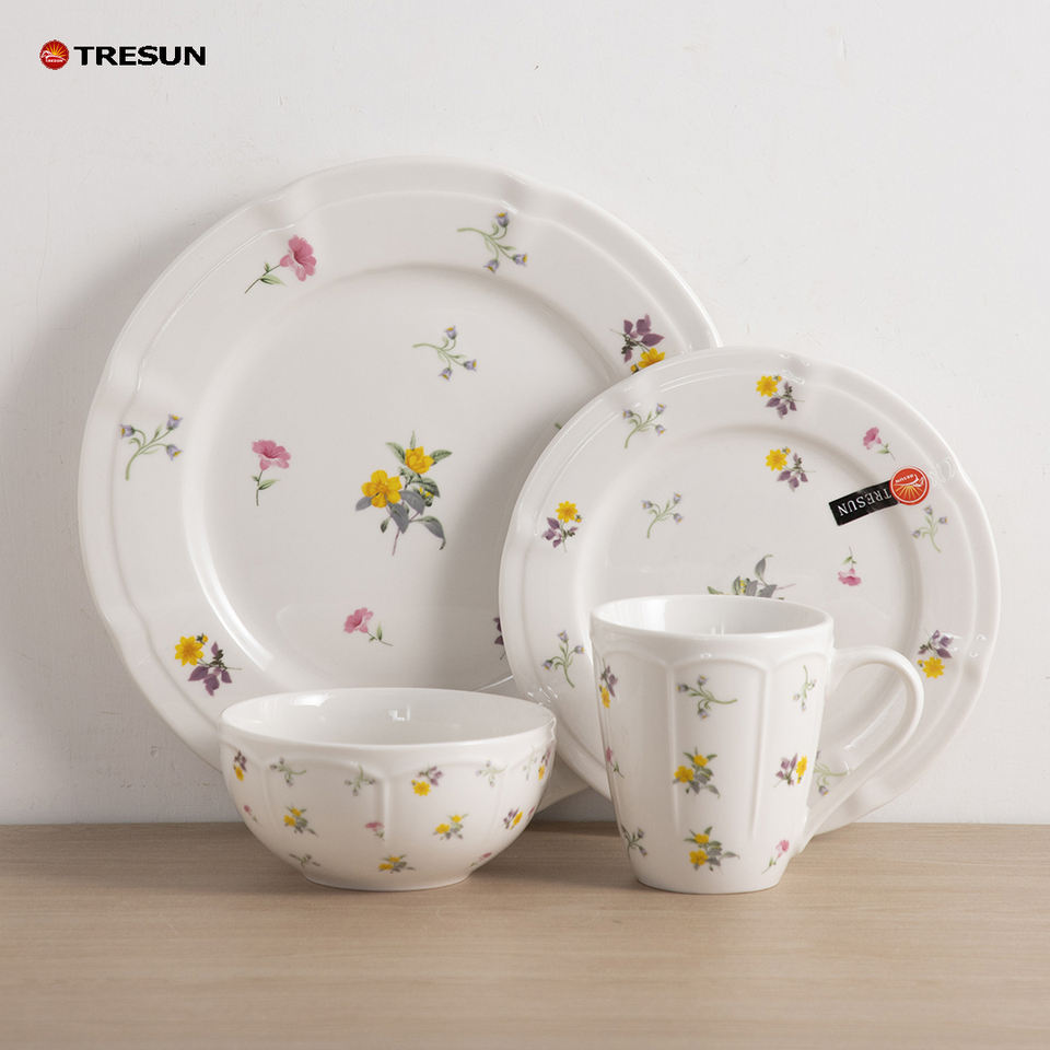 ชุดจานชามลายดอกไม้สีสันสดใสสไตล์จีน วัสดุพอร์ซเลนคุณภาพดี ใช้กับไมโครเวฟและเครื่องล้างจานได้