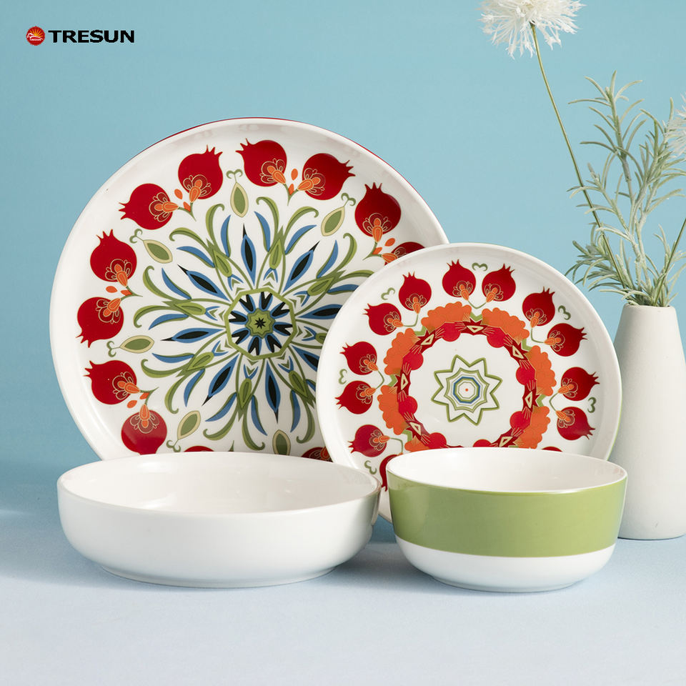 ชุดอาหารค่ำลายดอกไม้สไตล์จีนตะวันตกแบบนอร์ดิก ทำจากพอร์ซเลน ลายดอกไม้สีสันสดใส สวยงาม พร้อมชุดถ้วย ใช้กับไมโครเวฟและเครื่องล้างจานได้