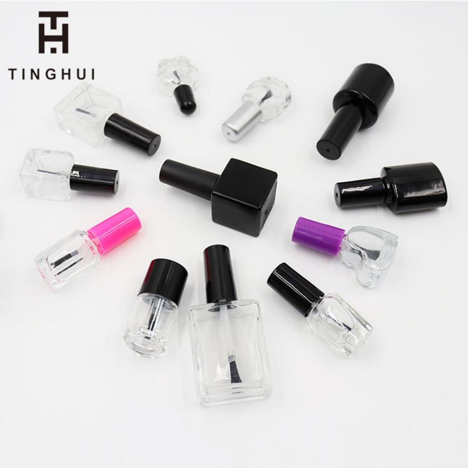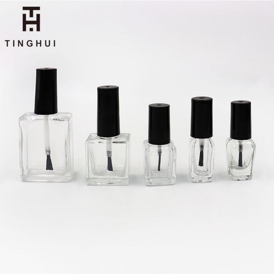 ขวดใส่ยาทาเล็บแบบใสทรงสี่เหลี่ยมจากซัพพลายเออร์จีน ขวดเปล่าสำหรับยาทาเล็บพร้อมแปรง