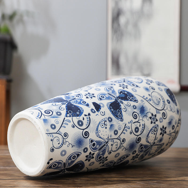 แจกันเซรามิกและพอร์ซเลนสีฟ้าและสีขาวแบบดั้งเดิมของจีนแจกันตั้งพื้นแบบคลาสสิกสำหรับโรงแรมแจกันดอกไม้ทาสีด้วยมือตกแต่งบ้าน