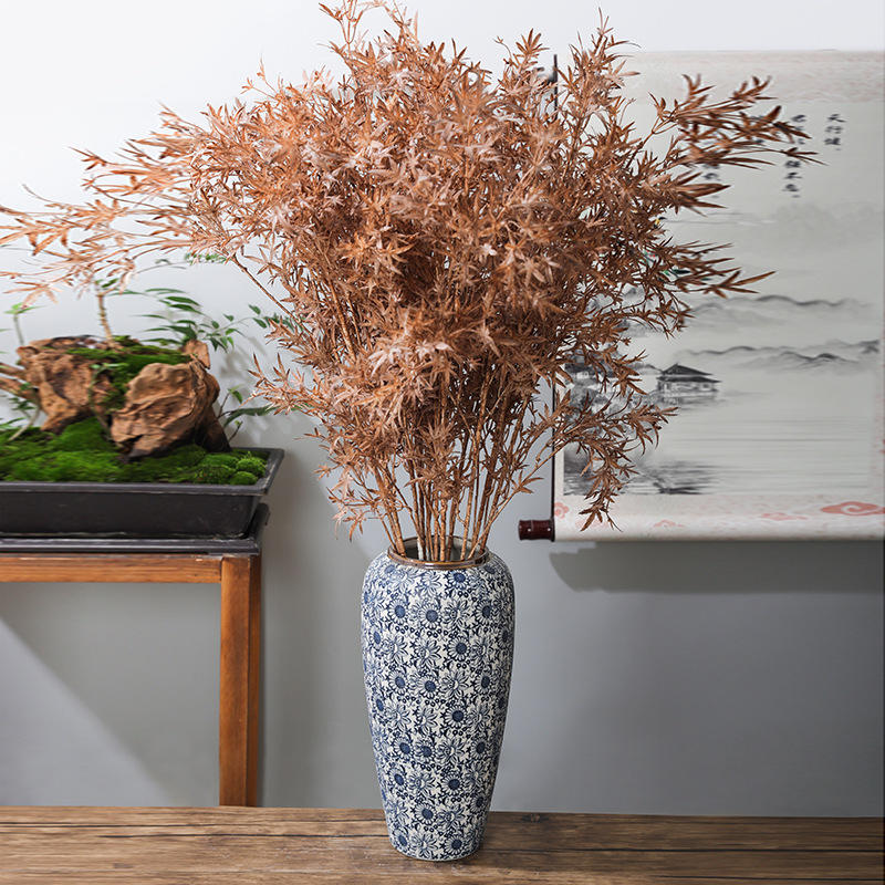 แจกันเซรามิกและพอร์ซเลนสีน้ำเงินขาวแบบจีนโบราณ แจกันตั้งพื้นแบบคลาสสิกสำหรับโรงแรม แจกันลายดอกไม้เพ้นท์มือสำหรับตกแต่งบ้าน