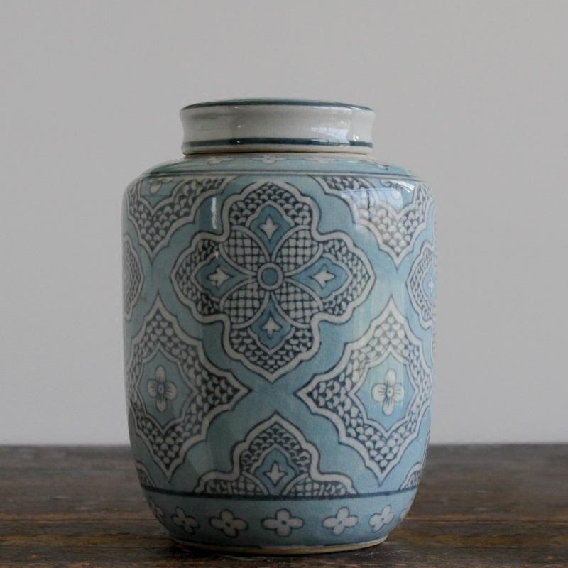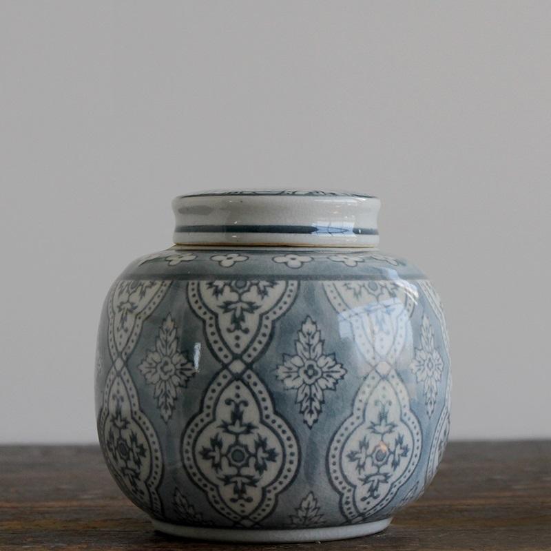 จีนแบบดั้งเดิมหรูหราพอร์ซเลนโบราณสีฟ้าและสีขาวกระป๋องโถเก็บเซรามิกสำหรับตกแต่งบ้าน